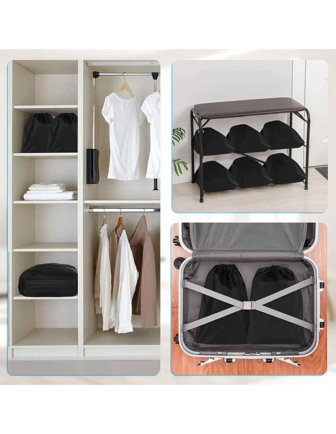 - MULTIUSO: Nuestras bolsas para zapatos para almacenamiento se pueden usar no solo para zapatos, sino también para ropa, cosméticos, artículos de tocador, juguetes, almohadas y más. También se puede usar como bolsa deportiva, bolsa de lavandería, bolsa de polvo, bolsa de regalo, bolsa de fitness, que es la mejor opción para el viaje en casa.