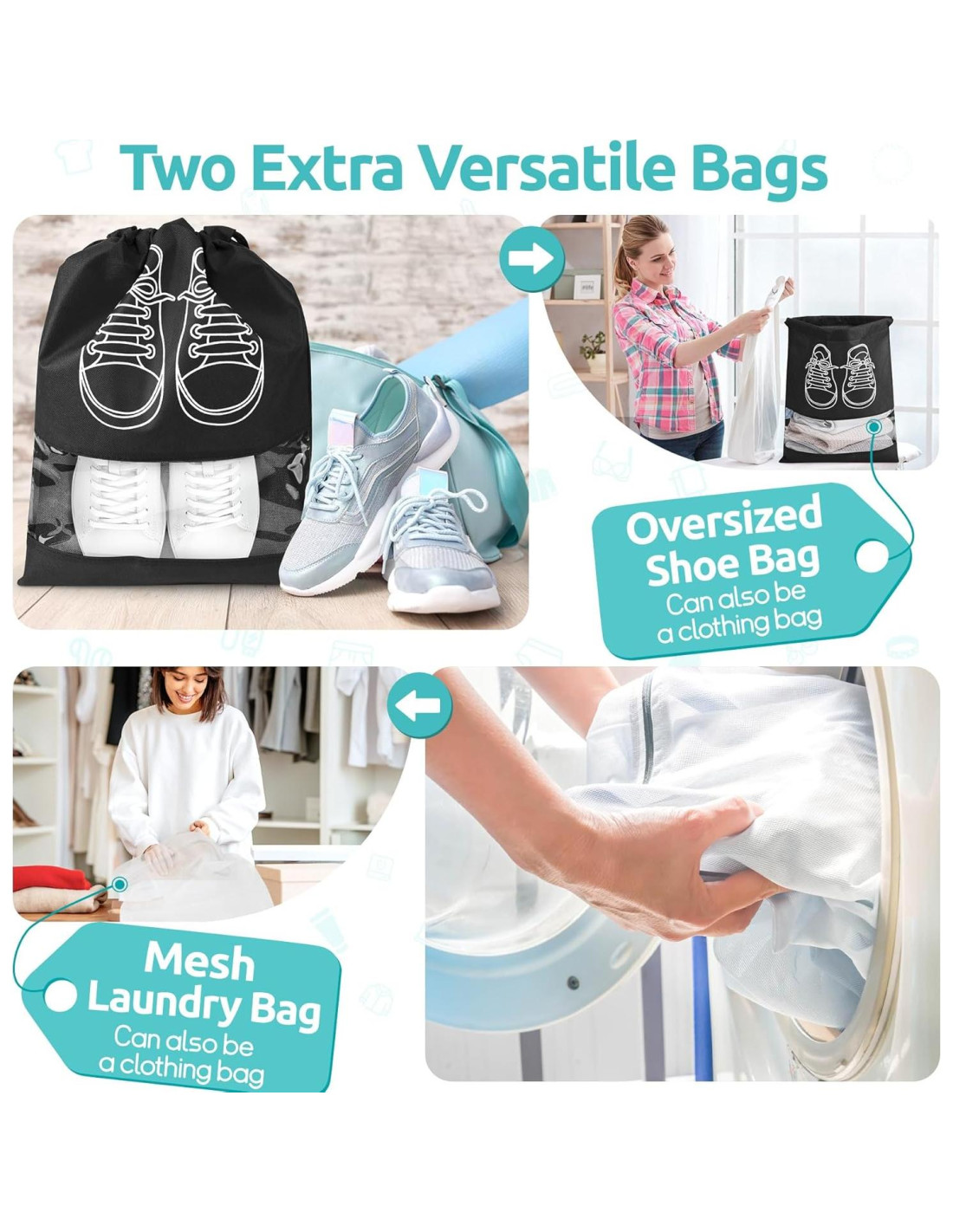 - Protección Delicada, Diseñada para Viajar: A diferencia de otros, proporcionamos una bolsa de ropa sucia adicional. Está especialmente diseñada para proteger tu ropa delicada durante tu viaje, previniendo daños por las lavadoras de los hoteles. Además, puedes usarla para separar la ropa sucia de la limpia, facilitando la identificación de tus prendas