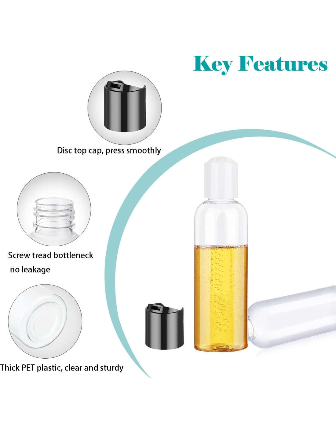 Botellas de viaje de 3.4 oz aprobadas por la TSA para artículos de tocador de tamaño de viaje, contenedores de botellas, accesorios esenciales para vacaciones en crucero. Etiquetas de clasificación incluidas para un uso diario fácil. Fáciles de llenar y limpiar. Pequeños contenedores de viaje. A prueba de fugas, rellenables y resistentes. Boca ancha fácil de llenar con una variedad de cosméticos y artículos de tocador. Las botellas de viaje APROBADAS por la TSA cumplen completamente con la regla 3-1-1 para líquidos y geles de mano. Contenedores de viaje de 3.4oz/100ml o menos dentro de una bolsa de artículos de tocador transparente de 1 cuarto por pasajero. El pequeño kit de botellas de viaje es perfecto para viajes en avión o vacaciones nacionales e internacionales. Paquete que incluye: 4 botellas de viaje 1 bolsa de artículos de tocador