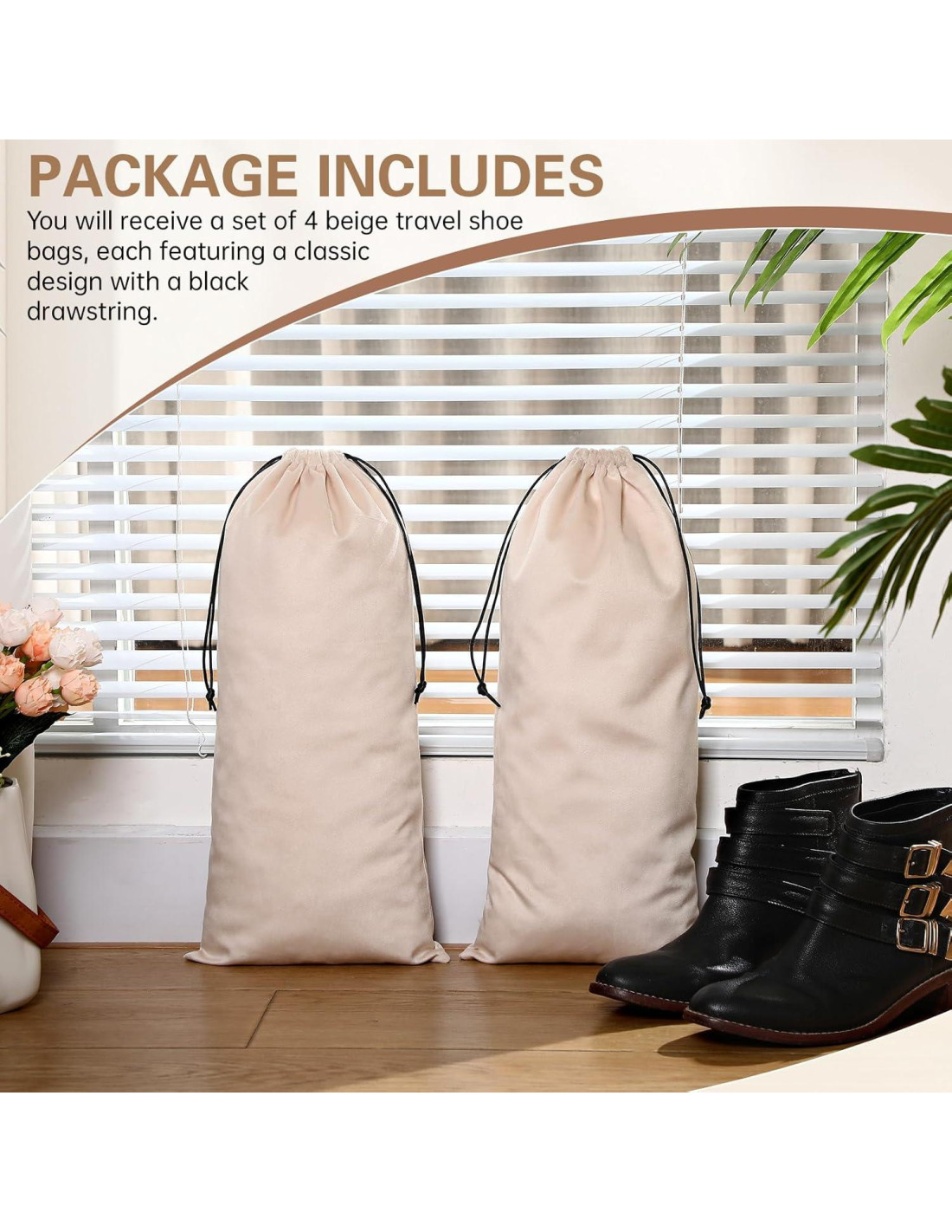 - Incluye paquete: recibirás un conjunto de 4 bolsas de zapatos de viaje beige, cada una con un diseño clásico y un cierre de cuerda negro; Elaboradas con precisión, estas bolsas son adecuadas para uso diario, reemplazos y compartir.