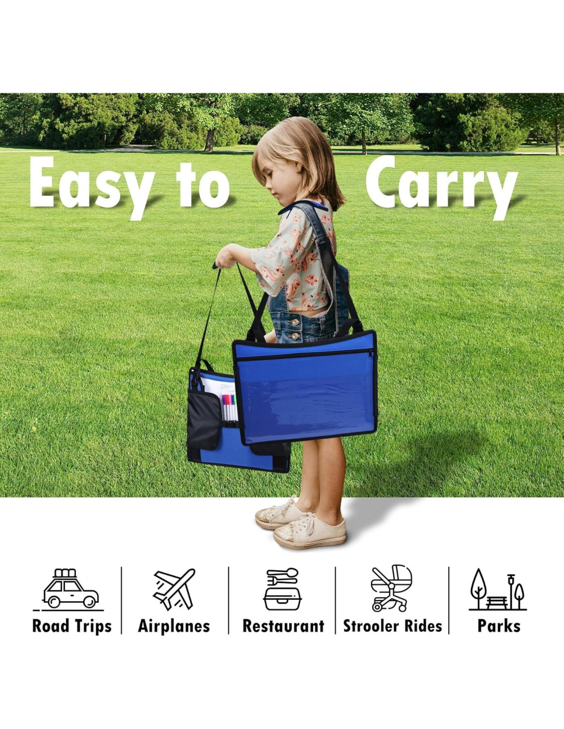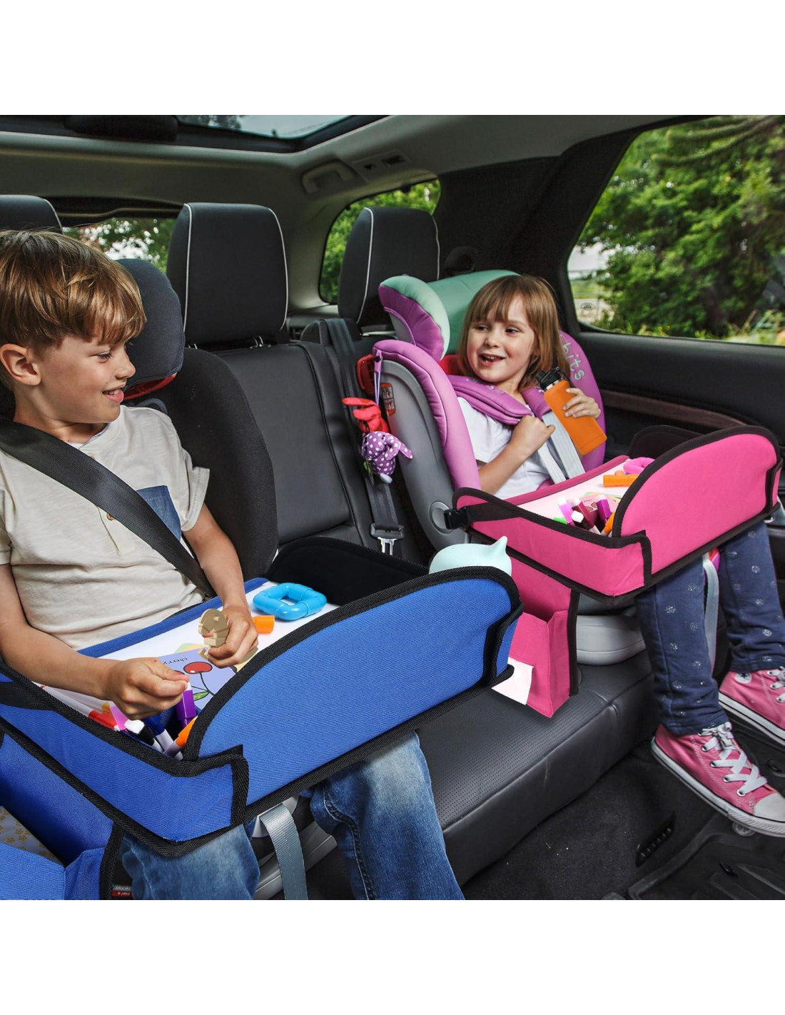 - Bandeja de Viaje Multifuncional para Asiento de Coche para Niños: Múltiples bolsillos de malla mantienen organizados los juguetes, marcadores de colores, bocadillos y botellas de agua de su hijo y al alcance. La correa ajustable de doble propósito asegura la bandeja en su lugar y se puede usar como una correa de transporte conveniente para viajar
