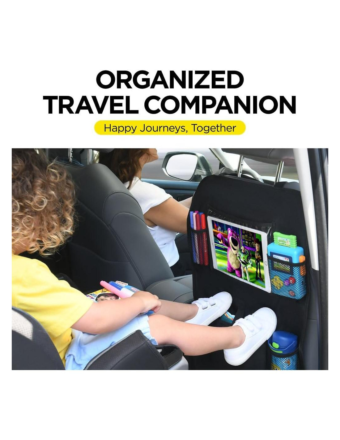 - Cobertura grande - Nuestra cubierta de asiento trasero para niños viene en un paquete de dos, por lo que tanto el asiento del conductor como el del pasajero pueden estar protegidos, incluyen 5 prácticos bolsillos de almacenamiento para mantener organizados todos los accesorios de viaje de sus hijos, así como un soporte de alta calidad para iPad o tablet. Mide 19" x 27" (48.3 cm x 68.6 cm) y se adapta a todo tipo de vehículos, así que tenga la seguridad de que cubrirá de manera segura todo el asiento con un ajuste ceñido.