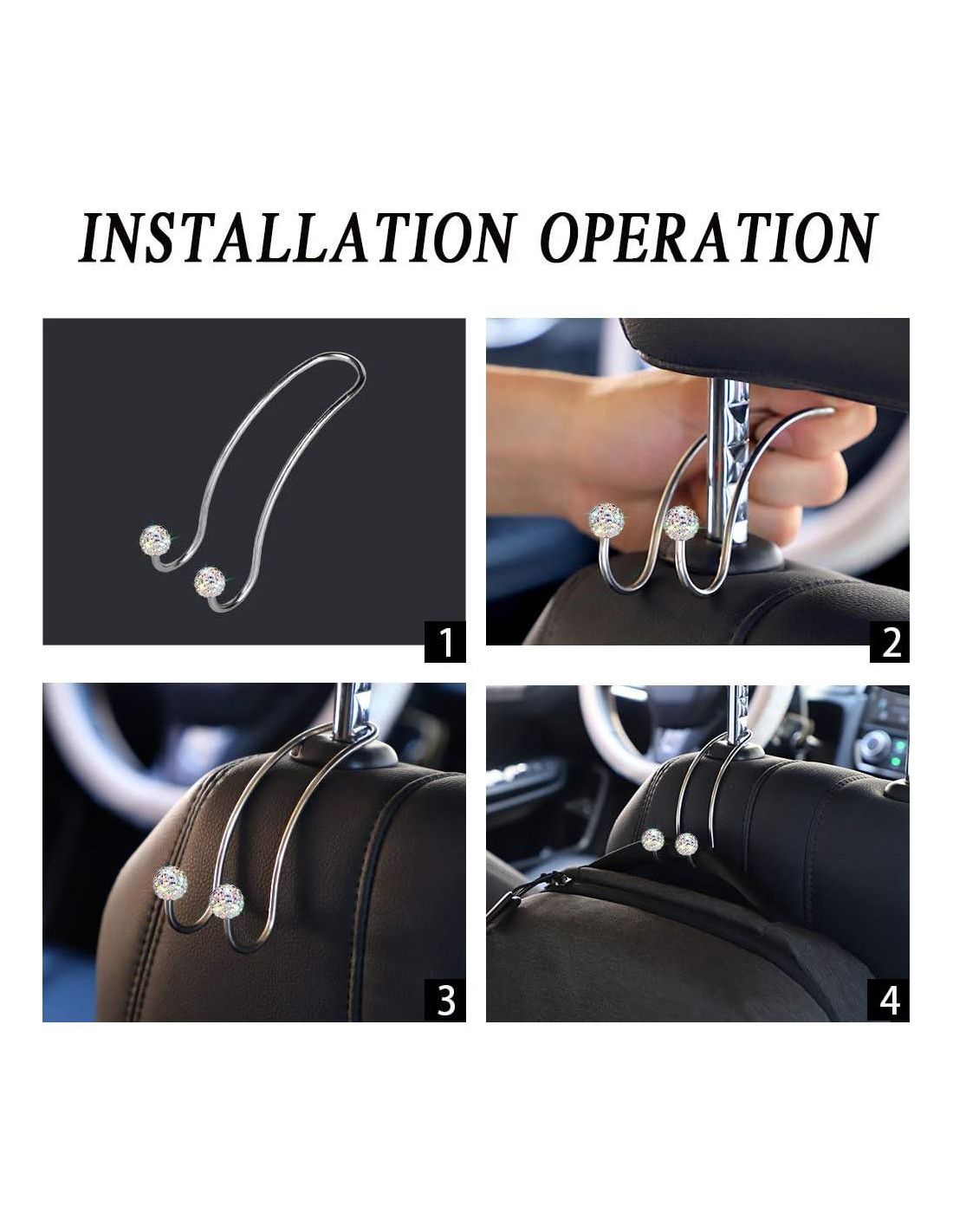 Se puede instalar en el poste de hierro con un diámetro de 10-22mm. No se puede instalar en el automóvil que no tiene postes de soporte de hierro entre el asiento delantero y la cabecera. Tire de la cabecera hacia arriba, fije firmemente en la varilla de conexión. Especificaciones: Tamaño del producto: 11*3cm. Material: Acero inoxidable + Cristales Brillantes. El paquete incluye: 2 ganchos para cabecera de asiento de automóvil. Los artículos que se pueden colgar incluyen bolsas, carteras, mochilas, comestibles, abrigos, sombreros, bolsas de basura, cascos de bicicleta y más. Acero inoxidable + Cristales Brillantes. Duradero y brillante. Idea de regalo perfecta para mujeres, chicas que tienen un automóvil. *Necesita mantener los artículos en su lugar. *Bolsas de compras, carteras, mochilas con correas gruesas. *Mantenga las bolsas de caer y derramarse. Nuestra misión es simple: ayudarle a agregar un toque de lujo a su vida con nuestros accesorios brillantes. En SAVORI, creemos firmemente que todos merecen un toque de lujo en sus vidas. Por eso estamos comprometidos a hacerlo accesible para todos. Ya sea que esté buscando un conjunto completo de accesorios de automóvil deslumbrantes o agregar un atuendo brillante a sus artículos para el hogar, lo tenemos cubierto. Entonces, ¿por qué esperar? Eleve su vida y mejore su viaje con SAVORI hoy. Experimente la pura alegría de agregar un toque de glamour a su rutina diaria.