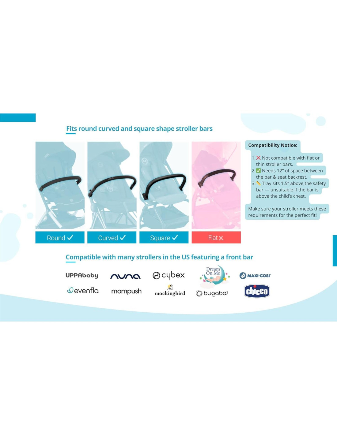 - COMPATIBLE CON LA MAYORÍA DE LOS COCHECITOS - Compatible con muchos cochecitos en los EE. UU. que cuentan con una barra frontal. Verifica los requisitos en la descripción a continuación.