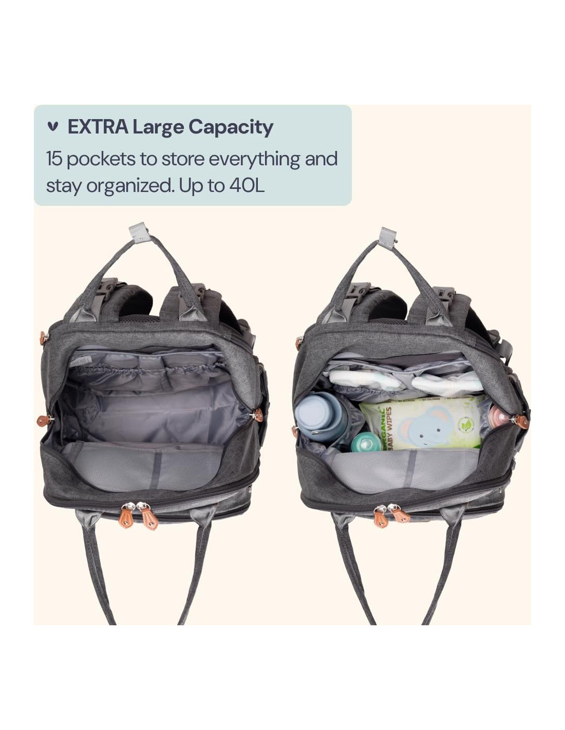- ¡Regalos Perfectos para Baby Shower de Gemelos! ¡Tu búsqueda de registro de bebé termina aquí! La mochila de pañales extra grande se expande de 30 a 40 litros de capacidad, 50% más almacenamiento que nuestra mochila de pañales original. Incluye soporte para chupete y un cambiador plegable fácil de limpiar (tamaño: 23''x14.5'' (58,42 cm x 36,83 cm)), correas para cochecito - ¡todo lo que los padres en movimiento necesitan!