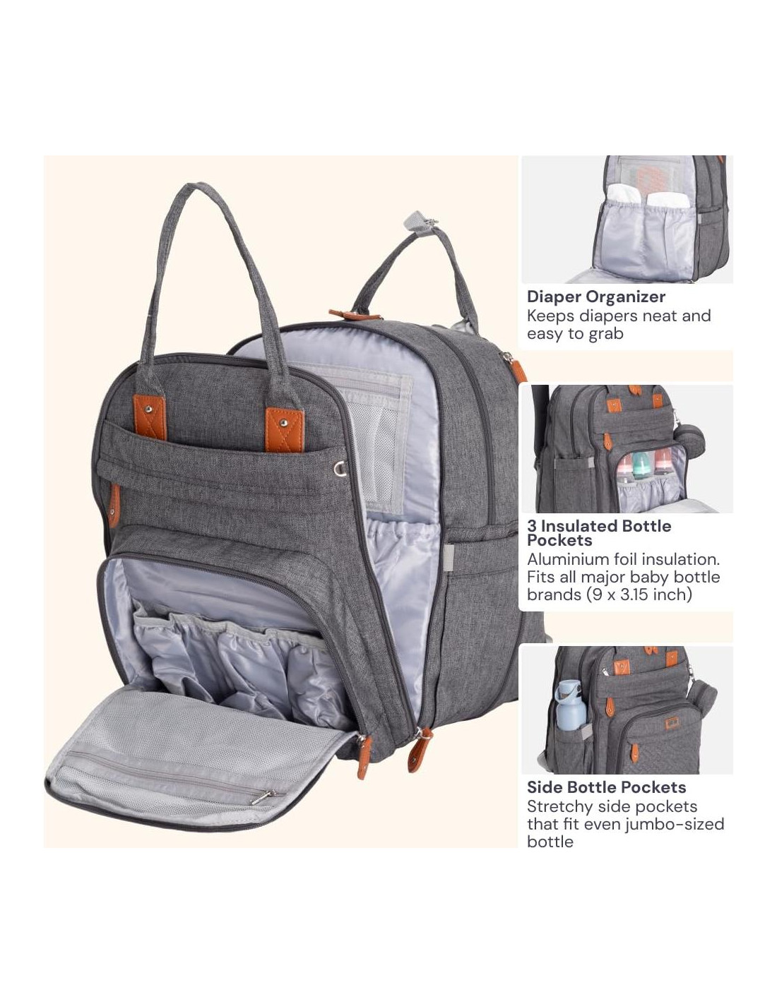 - Mochila de Pañales XL ideal para dos niños - se expande para ofrecer mucho espacio para guardar cosas de bebé, ¡además de un poco para mamá y papá! Incluye 2 compartimentos principales, 5 bolsillos aislados (aptos para todas las botellas de bebé principales), un bolsillo para toallitas y un cambiador multifuncional dedicado. Bolsillo para tabletas y laptops de hasta 15.6'' (39,62 cm). MUCHO espacio de almacenamiento, con cremalleras de fácil deslizamiento que hacen que esta mochila para cambiar bebés sea fácilmente accesible con una mano.