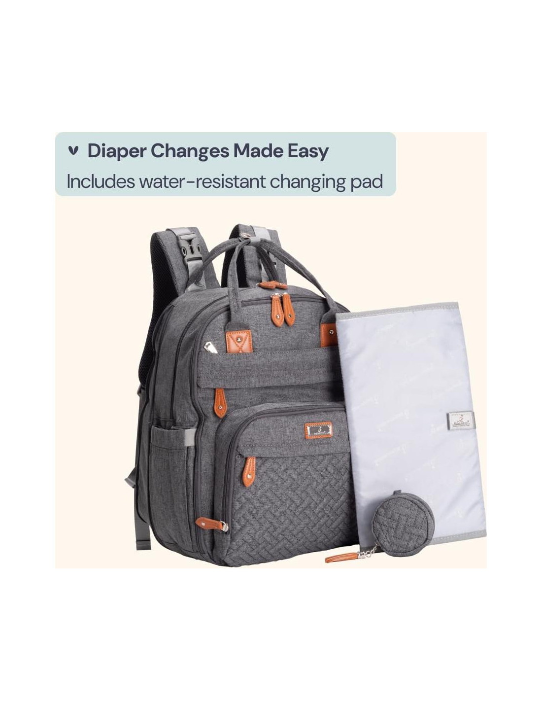 - Durabilidad y Comodidad - Nuestras elegantes mochilas para pañales son de tela resistente a desgarros y al agua, cremalleras fuertes y forro. Correas de hombro curvadas y acolchadas reforzadas distribuirán la carga de manera uniforme en tus hombros y espalda para un uso prolongado.