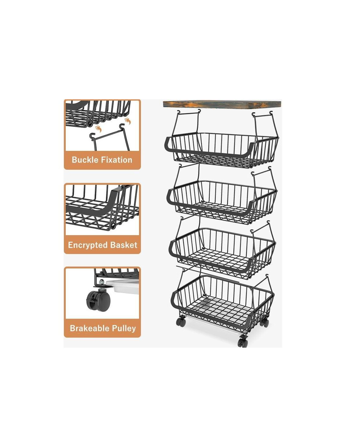- [Almacenamiento Multifuncional]: Cestas rodantes apilables de múltiples niveles, una capa se coloca sobre otra, base de madera fuerte en la parte superior. Forma de trabajo de clic rápida para instalar, se puede dividir para el mostrador, de modo que el área de la cocina se vuelva ordenada y ordenada. También puede ser una opción para colocar en la esquina de la oficina, baño o dormitorio ...etc.