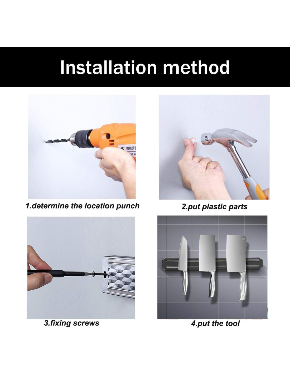 - Instalación y limpieza rápidas: Solo necesitas 2 tornillos y varios minutos para instalar fácilmente tu soporte magnético para cuchillos en la pared. Para limpiarlo, usa un paño suave y húmedo. Lava con agua y detergente suave o jabón, si es necesario. Seca con un paño limpio.