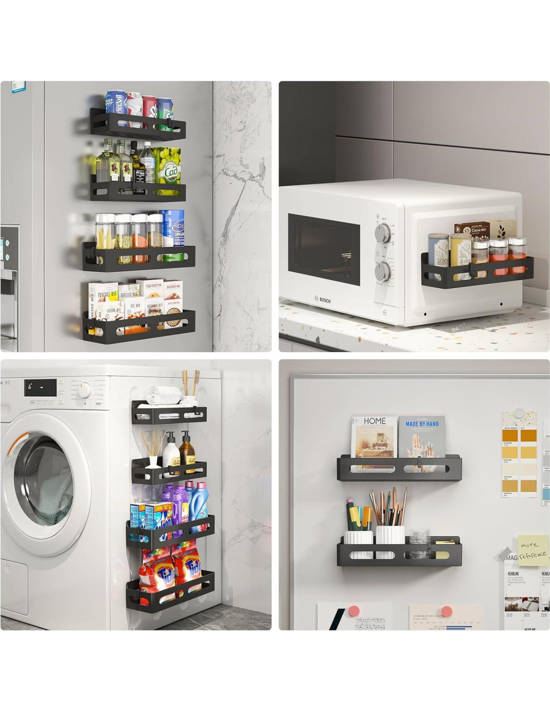 - Duradero y Seguro: Construido con plástico de alta calidad y potentes imanes, los estantes aseguran un ajuste estable en cualquier superficie metálica, ofreciendo un uso duradero sin deslizamientos ni desplazamientos.