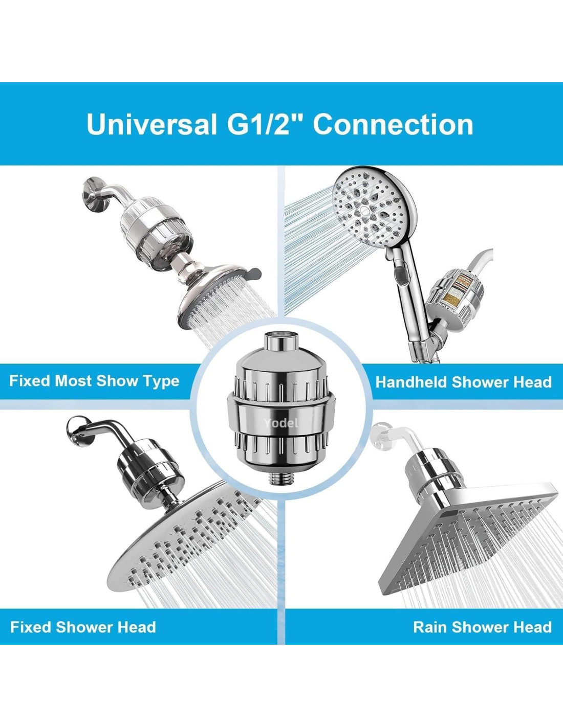 - AMPLIA COMPATIBILIDAD - Nuestro filtro de etapa de vitamina C universal está diseñado para adaptarse a la mayoría de las interfaces estándar de duchas fijas, de lluvia, de mano o combinadas, y ofrece una amplia compatibilidad