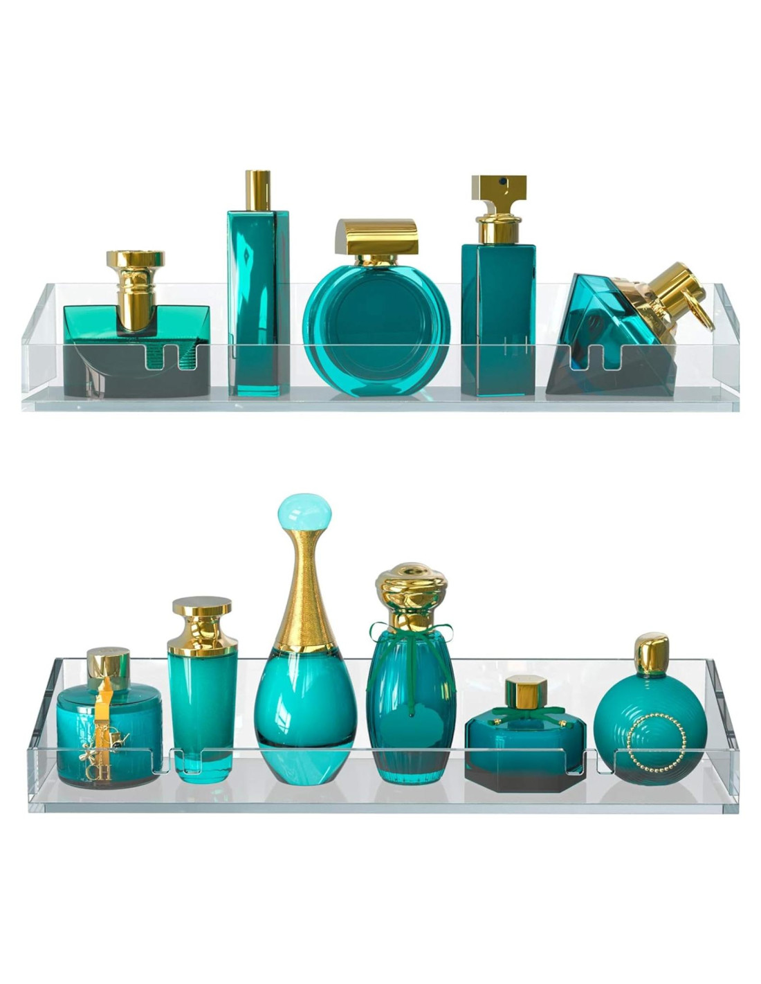 - Maximizando espacio y estilo: Instala estos estantes en la pared de tu baño para aprovechar al máximo el espacio vertical, dándote suficiente espacio para almacenar y exhibir lo esencial sin desordenar la encimera.