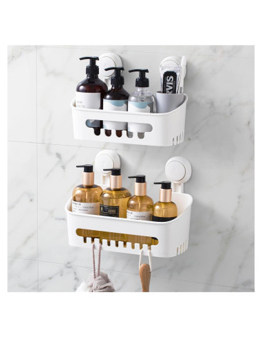 - Ventosa de Caddy de Ducha Poderosa y Duradera: Ventosa de TPE con diseño biónico de tentáculos de pulpo y gancho de plástico ABS asegura resistencia a la intemperie (-20C-80C), impermeable, a prueba de aceite y anti-envejecimiento; caddy de ducha con plástico grueso puede soportar hasta 10KG (22 lbs) y adherirse firmemente durante años después de la instalación sin preocupaciones. La dimensión de la pequeña cesta de ducha es 27.4 * 9.4 * 7.4 cm (L*W*H), y la gran cesta de ducha es 30.5 * 11.9 * 8.6 cm (L*W*H).