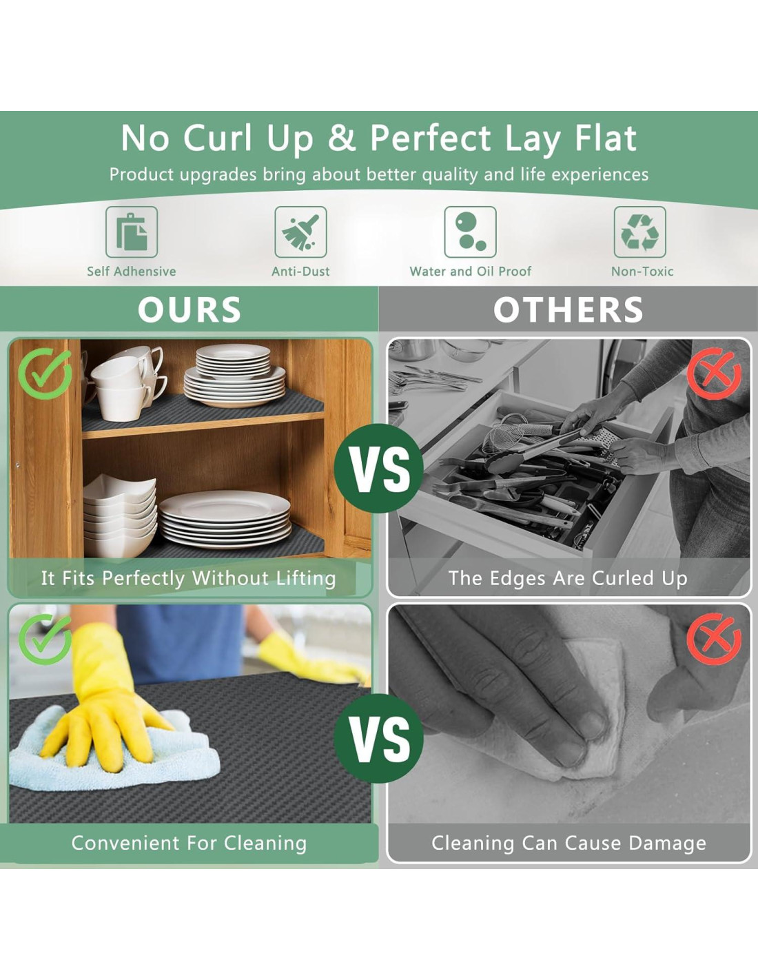 - Mejora tu Gabinete de Cocina: Protege eficazmente tus gabinetes de cocina de manchas de aceite y acumulación de residuos, manteniendo tus espacios de almacenamiento consistentemente ordenados. No es necesario repintar gabinetes desgastados, simplemente coloca estos forros frescos para una mejora instantánea, elevando sin esfuerzo la sofisticación de tu cocina.