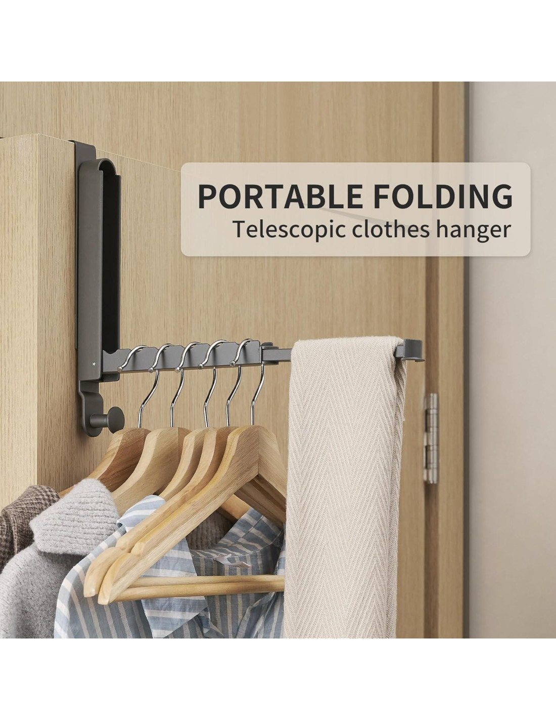 - Diseño sobre la Puerta: No se necesita perforar ni instalar. El estante para secar ropa es perfecto para puertas de baño, dormitorio, cocina o sala de estar para colgar ropa u organizar accesorios como pinzas para ropa y perchas