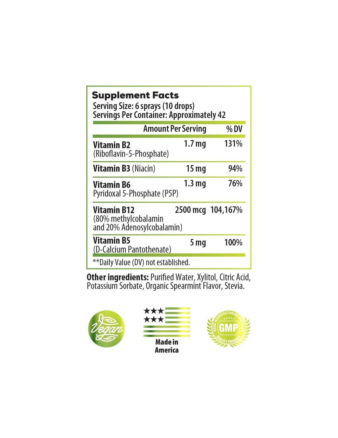 - - El spray sublingual permite que la fórmula evite el proceso digestivo y se absorba instantáneamente en el torrente sanguíneo. Obtén un impulso de energía mientras las vitaminas B recorren tu torrente sanguíneo en minutos. ¡La aplicación en spray lo hace más absorbible que cualquier cápsula, pastilla o gomita!