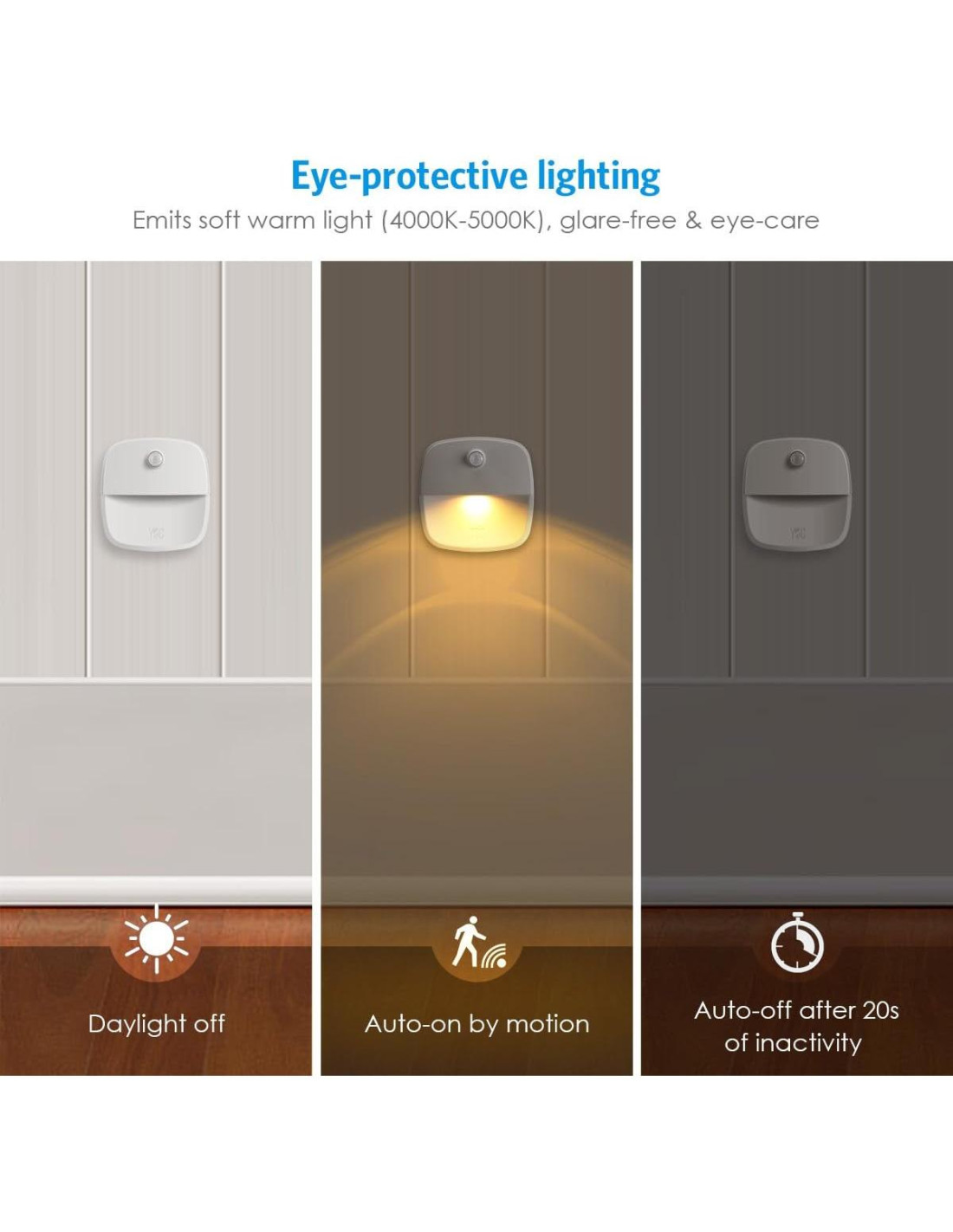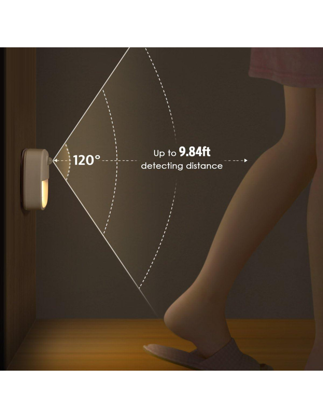 - Luz Suave - La luz nocturna de sensor está equipada con 1 bombilla LED 2835, que emite un suave blanco cálido (4000K-5000K) y tiene un menor consumo, ofreciendo suficiente luz y protección ocular sin deslumbramiento, evitando tropezar en la oscuridad de manera efectiva.