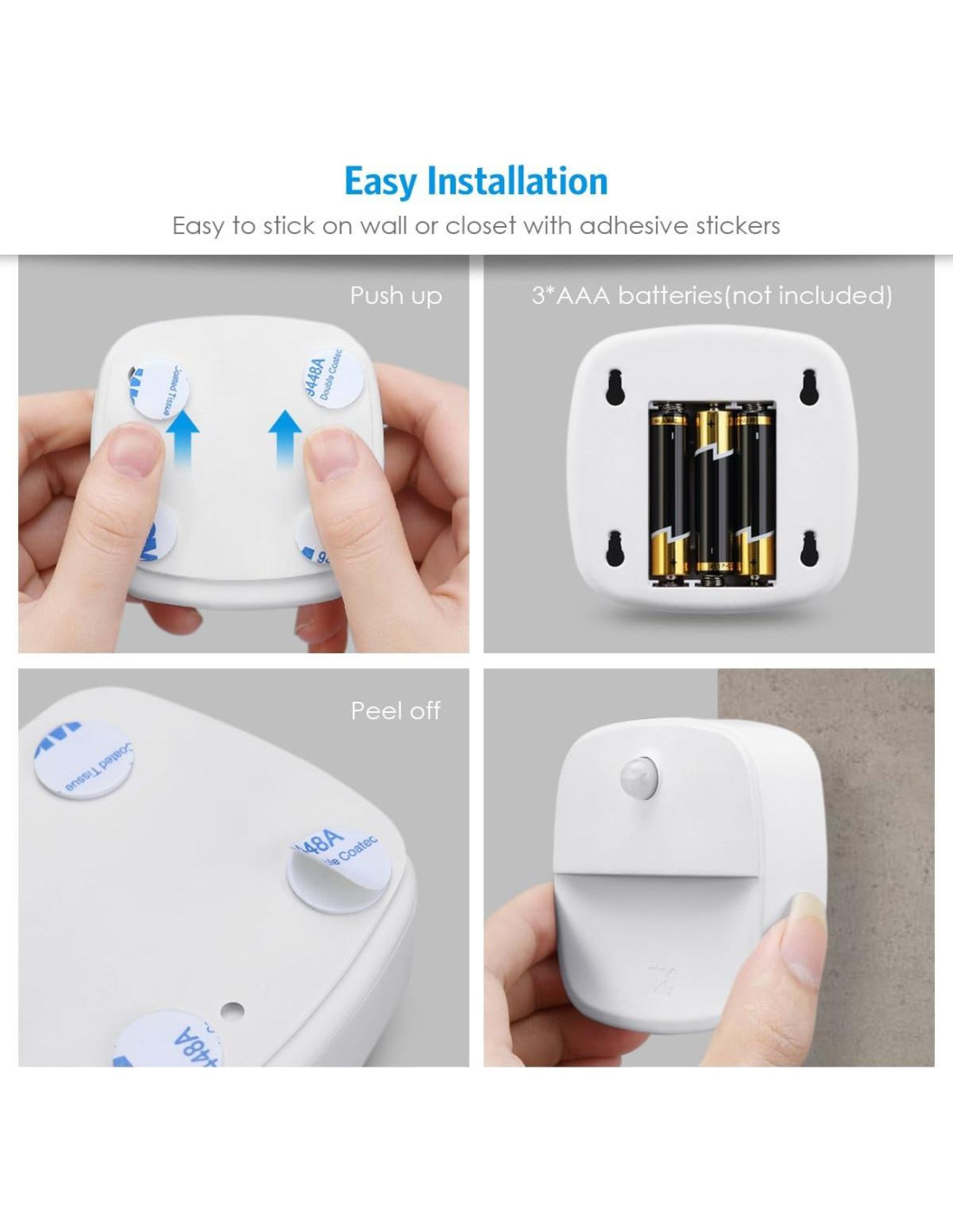 - Montaje Simple - La luz viene con un adhesivo que le permite pegarla en un gabinete o en la pared como prefiera. Puede instalarla en segundos sin tornillos para evitar dañar cualquier mueble o pared, desarmándola fácilmente sin herramientas adicionales.