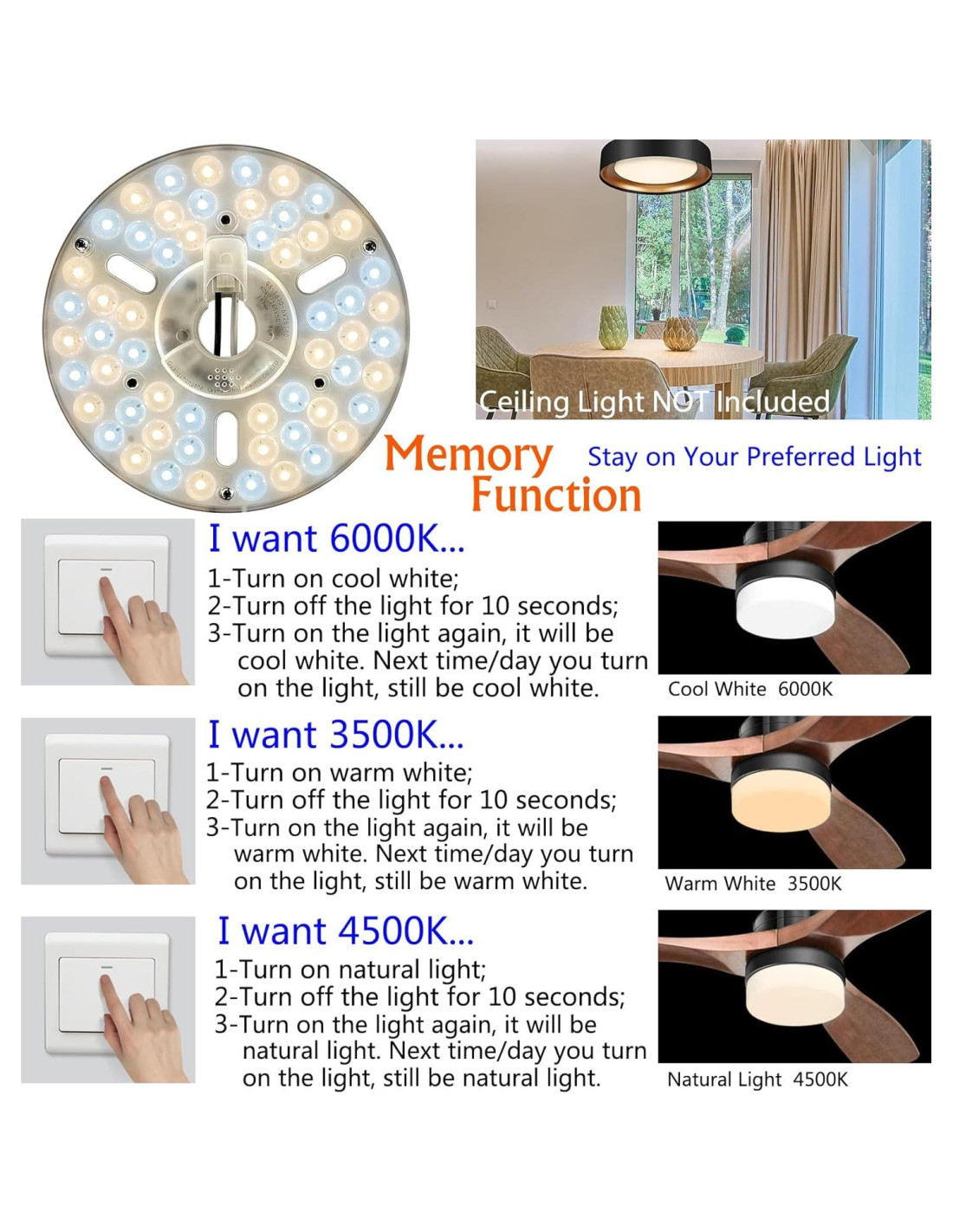 - Reemplazo Sin Complicaciones Con tecnología de módulo LED, este kit es una solución perfecta para la mayoría de los ventiladores de techo estándar y luces de techo empotradas. Está diseñado para proporcionar una solución fácil de instalar para aquellos que buscan reemplazar su antiguo kit de luz de ventilador de techo o lámpara.