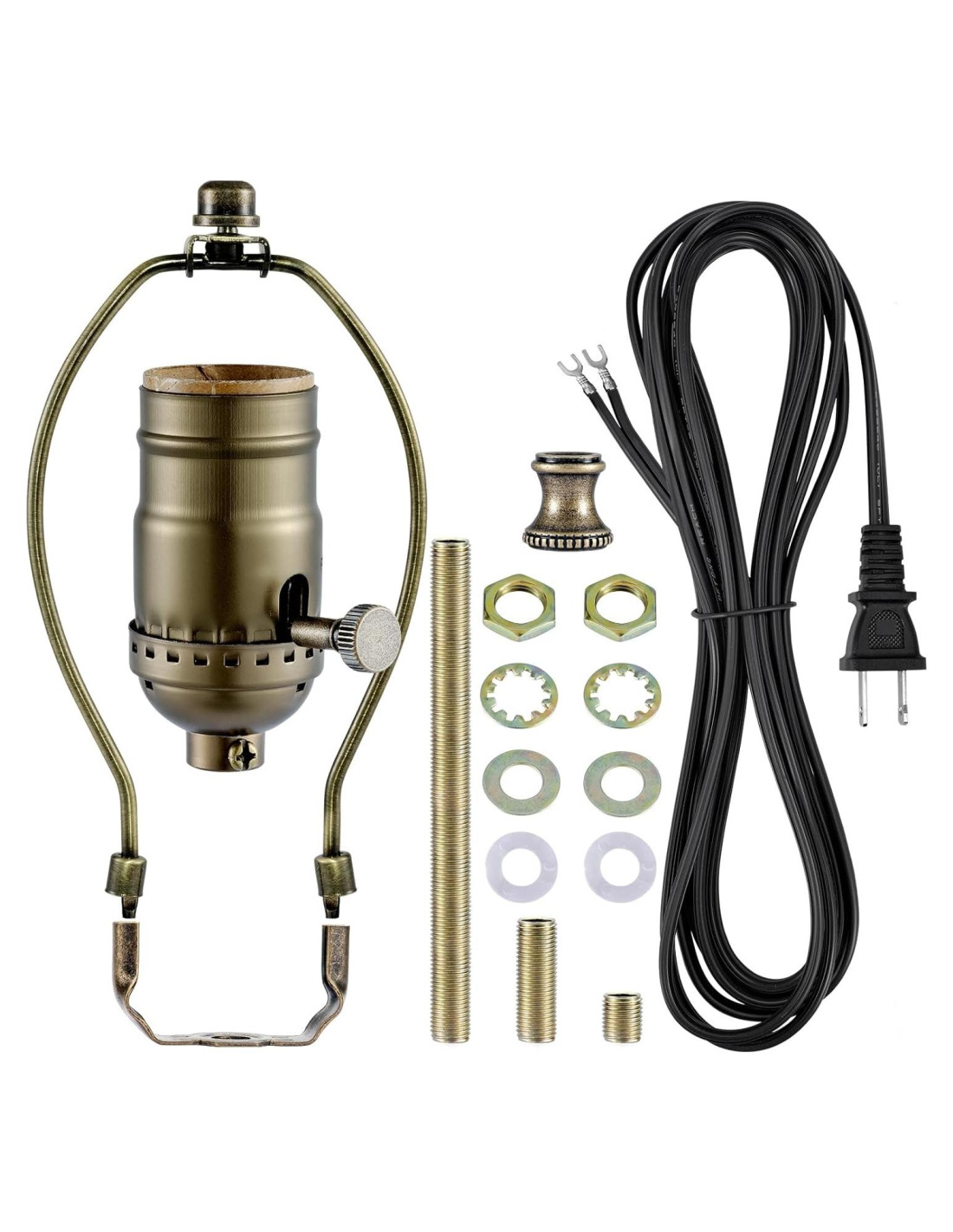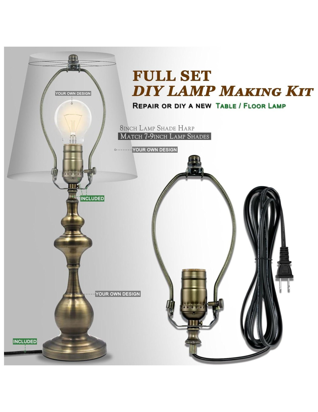 - PARTES DE LÁMPARA MEJORADAS EN JUEGO COMPLETO DE LÁMPARA - El kit incluye un portalámparas con botón de 3 vías, un cable de 12 pies, un arpa de pantalla de lámpara de 8", un botón de interruptor de latón de repuesto, 4 tipos de arandelas y tuercas hexagonales, 1 tubería de acoplamiento de latón y 3 opciones de nipples - 8", 2.5", 0.8" para tus diferentes necesidades de ensamblaje. Todas las partes esenciales incluidas.