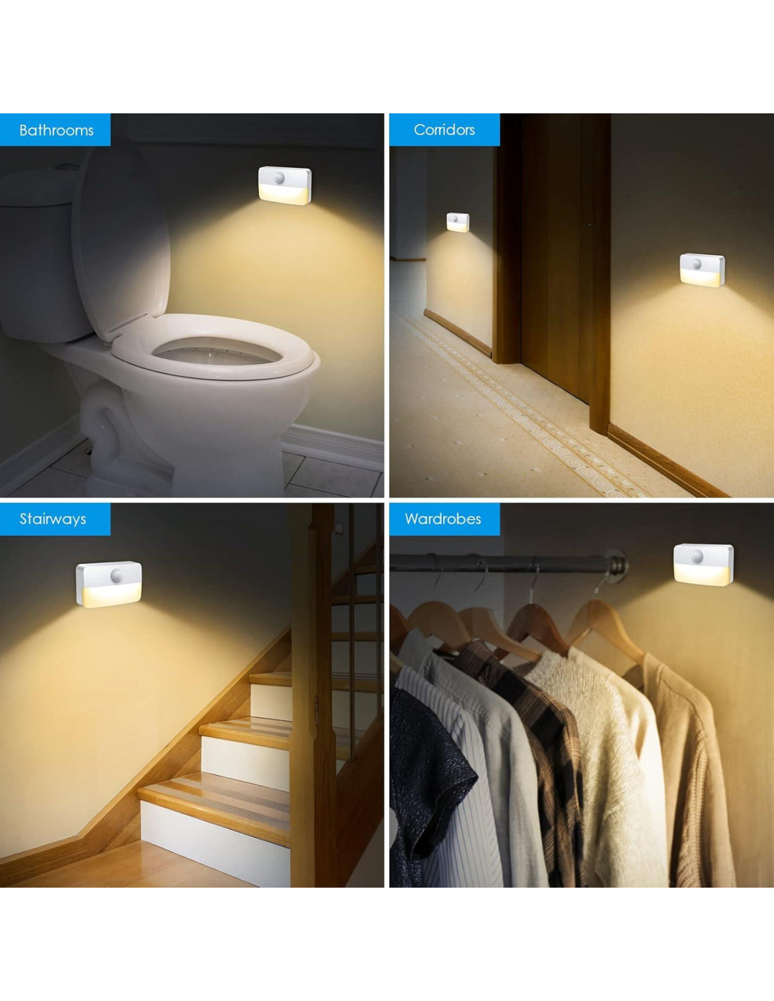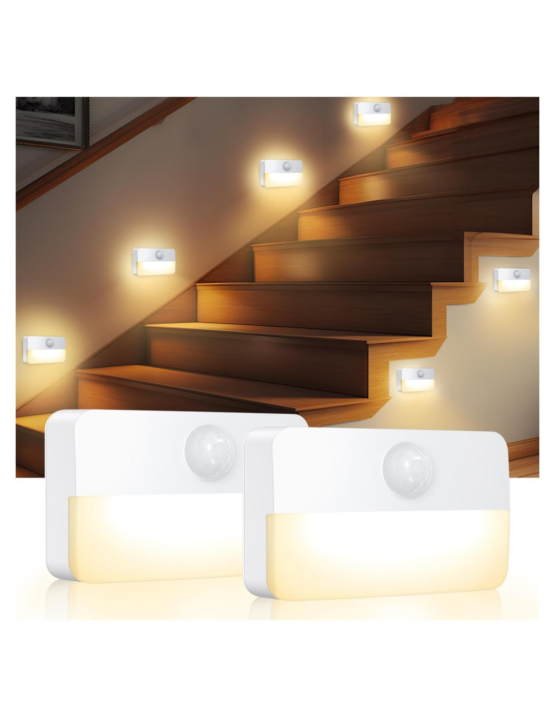 - [Ocasiones Aplicables] La luz de pasillo tiene un perfil delgado y un tamaño compacto de 2.5 x 1.5 pulgadas, las luces de escalera activadas por movimiento para interiores son ideales para iluminar espacios pequeños como armarios, escaleras, cocinas, habitaciones, baños, pasillos, mesitas de noche y más