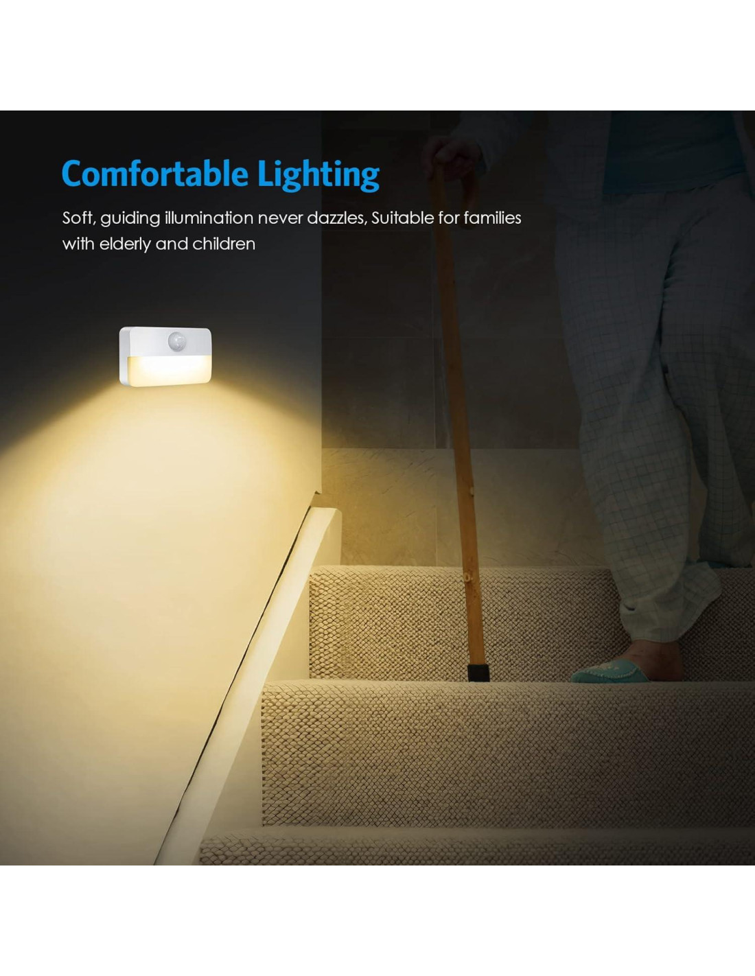 - [40 Lúmenes y 3000K] Las luces nocturnas LED con sensor iluminan bien los pisos oscuros con mucha luz, sin deslumbramiento, suaves para los ojos durante el uso nocturno. Ideal para habitaciones de niños para aliviar los miedos nocturnos y prevenir tropiezos