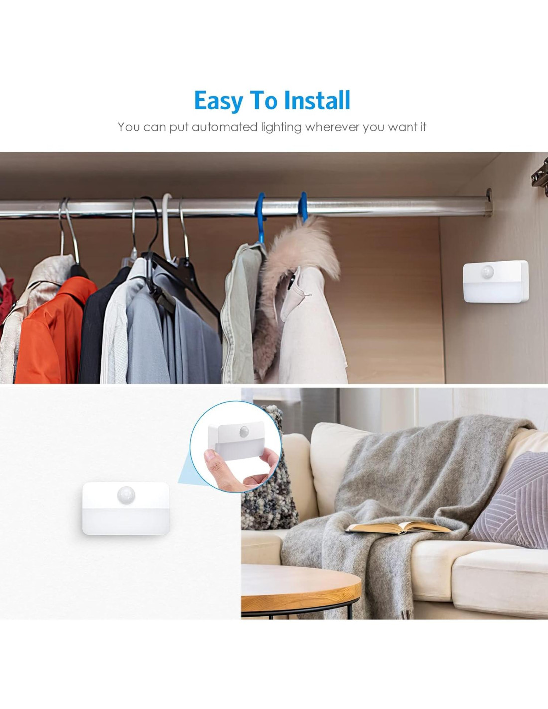 - [Fácil de Instalar] Las luces de armario vienen con almohadillas adhesivas de doble cara, no se requiere cableado duro, fácil y rápido de instalar, puede instalar las luces de armario en cualquier lugar. La luz electrónica se puede instalar en gabinetes, baños, garajes