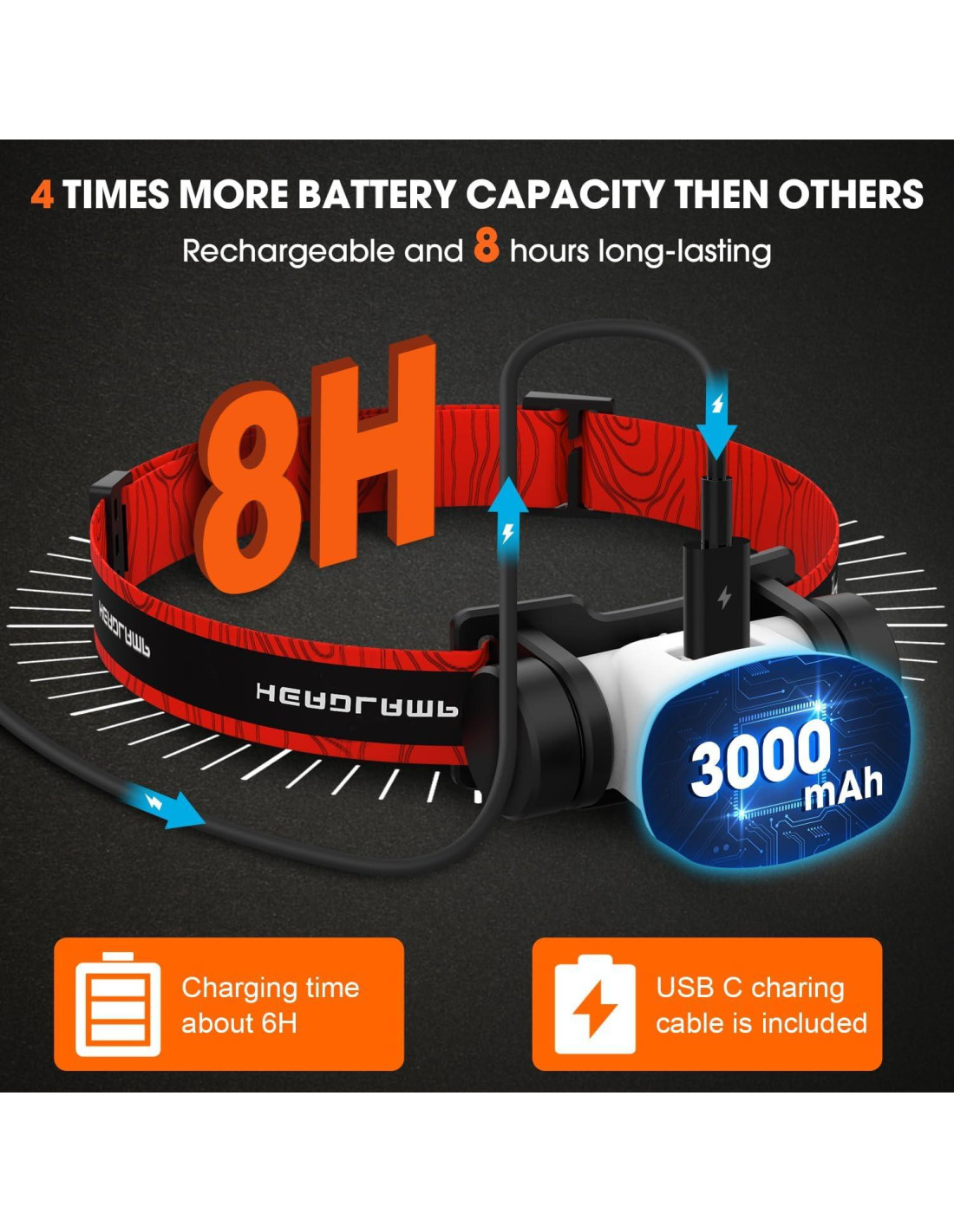 - 4 Modos + 3 Modos de Sensor de Movimiento + Pantalla Digital de Batería - La luz frontal tiene principalmente 4 Modos: Alto / Medio / Bajo / Estroboscópico / Alcance largo (Doble clic). El indicador de energía en tiempo real te permite monitorear el nivel de batería de un vistazo, asegurando que nunca te quedes a oscuras.