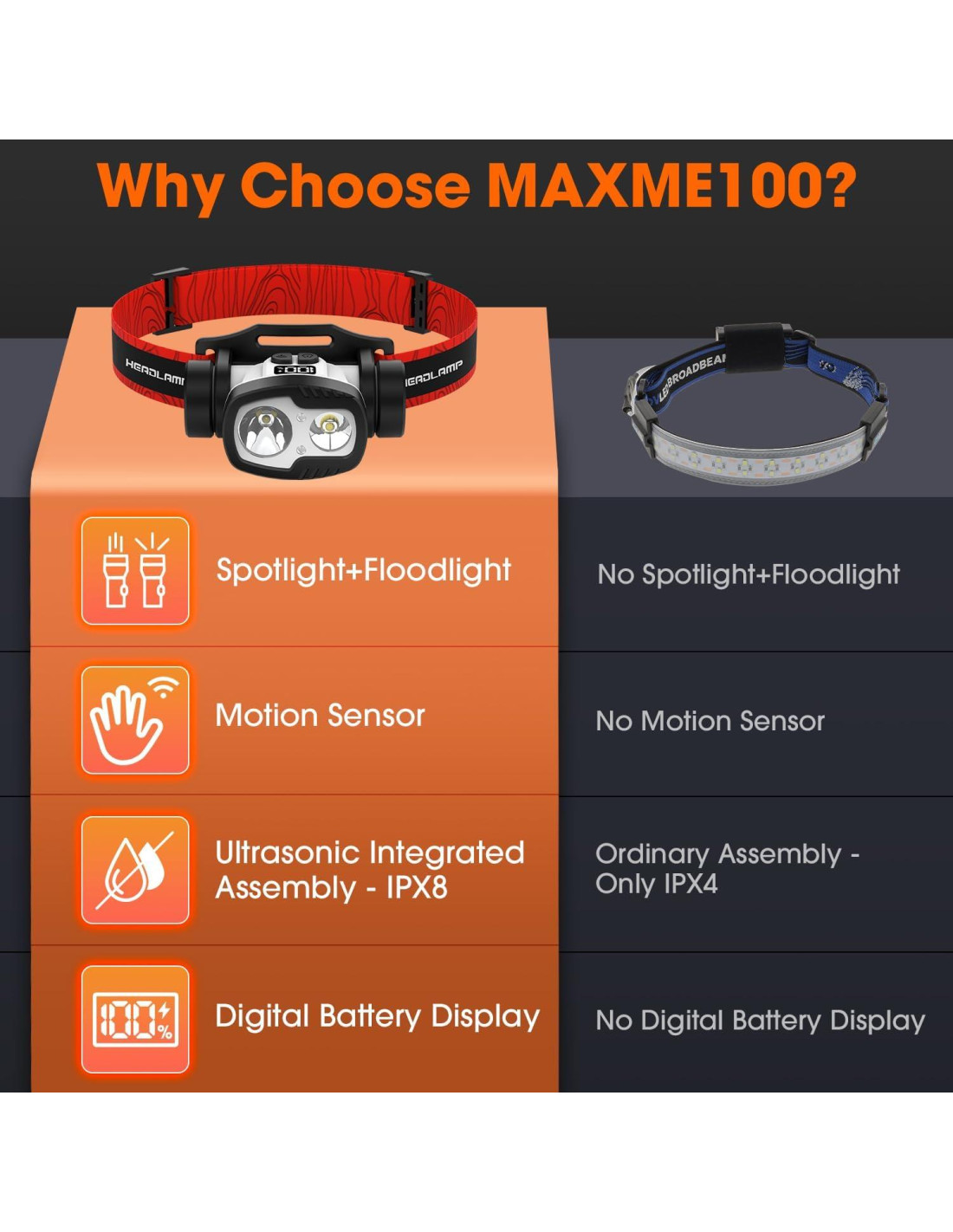 - [Ahorra Dinero, Invierte en Calidad]: La Lámpara Frontal Brillante MAXME100 no solo es rentable, sino que también es de alta calidad. Se acabaron los días de comprar baterías de repuesto caras. Esta lámpara frontal resistente es una inversión inteligente que te ahorrará tiempo y dinero a largo plazo.
