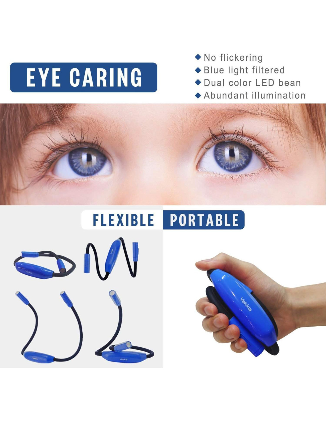 - Luz de Libro Ligera y Manos Libres Solo 3.6 onzas (102 g) de peso. Cubierta con goma suave de alta calidad, úsala alrededor de tu cuello para permitirte posicionar y enfocar la luz con precisión, o puedes doblarla en cualquier forma que necesites. Te permite concentrarte en lo que estás haciendo cuando lees o estás ocupado tejiendo, haciendo manualidades o ganchillo sin preocuparte por la luz.