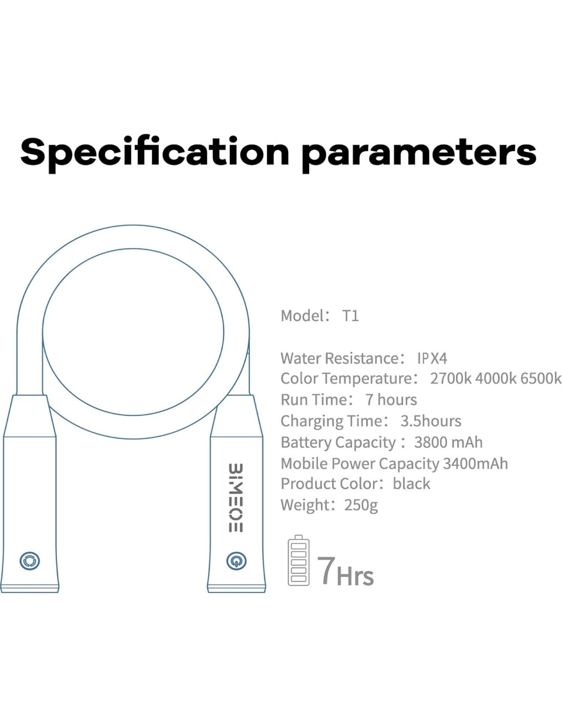 - Larga Duración de Batería: Con una batería incorporada de 3800 mAh, esta luz de cuello puede durar hasta 14 horas con una sola carga. También funciona como un banco de energía de emergencia para dispositivos móviles, con un puerto de carga Type-C universal que tarda solo 2 horas en recargarse por completo.