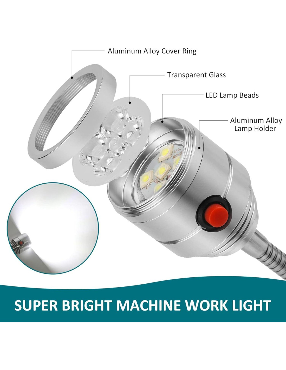 - Cuello de Cisne Flexible: La lámpara de cuello de cisne con base magnética tiene un diseño de eje flexible de 360. El ángulo de esta luz de trabajo se puede ajustar según sus necesidades de iluminación, lo que le permite enfocar la luz exactamente donde la necesita.