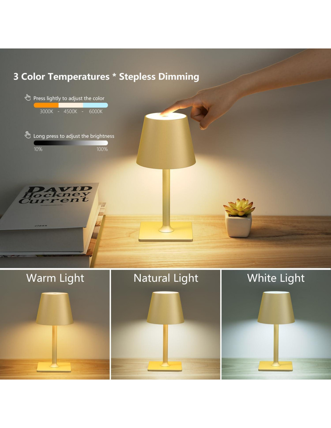 - 15-45 Horas de Funcionamiento: Nuestra lámpara a batería tiene baterías recargables de gran capacidad de 6000mAh, que pueden usarse durante 15-45 horas (dependiendo del brillo que selecciones) después de cargarla con USB-C durante 5 horas, lo que la convierte en la lámpara de mesa recargable perfecta. Reduce costos de energía y desperdicio de baterías.