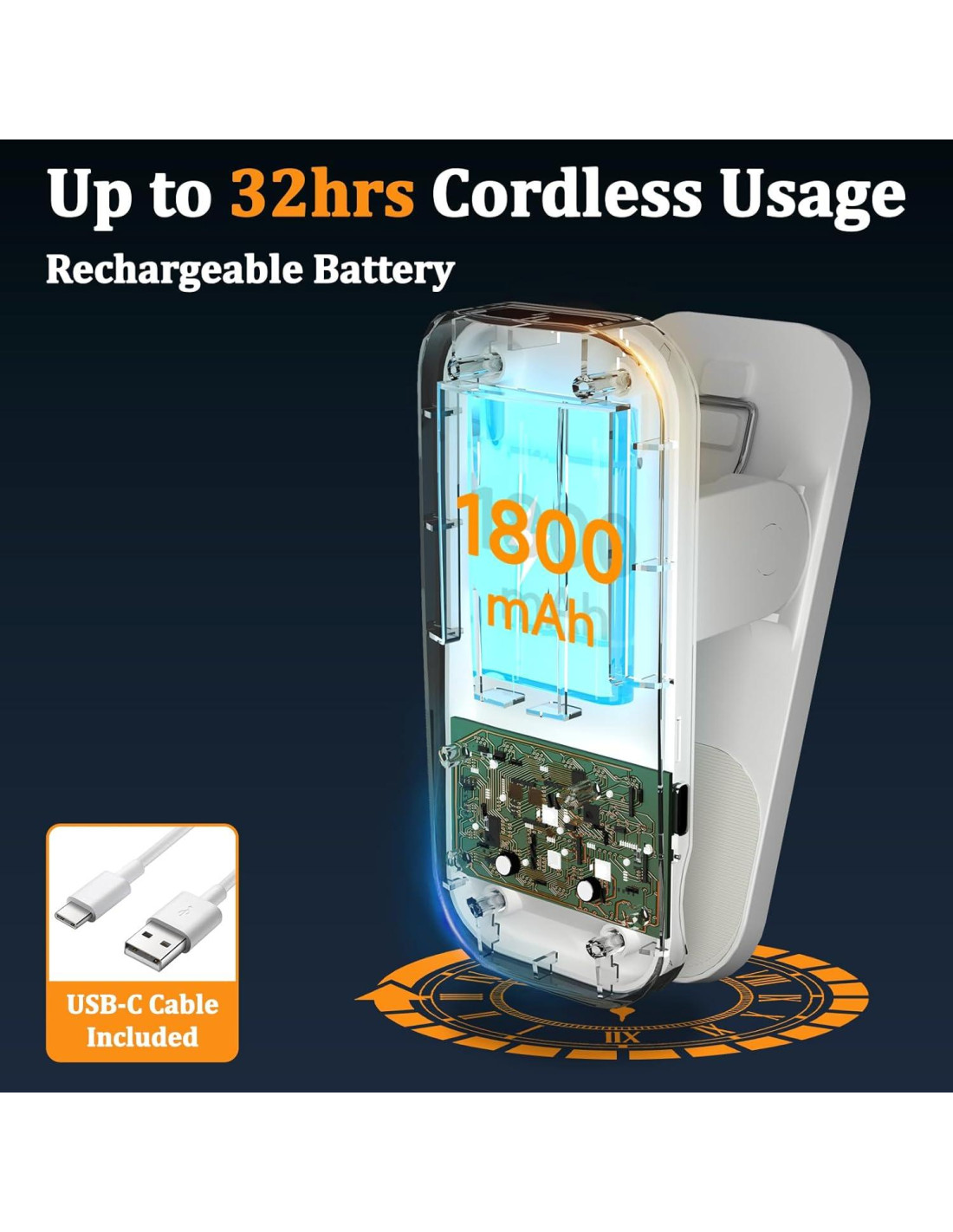 - Batería recargable y carga USB-C - La batería incorporada de 1800mAH proporciona hasta 4 horas en el brillo más alto y 32 horas en la configuración más baja cuando está completamente cargada, por lo que puedes disfrutar de luces de lectura sin cable sin preocuparte por cortes de energía. Usa el cable USB-C incluido para cargar convenientemente la luz de libro con adaptador USB (no incluido), banco de energía, enchufe de pared USB, computadora portátil o de escritorio (Por favor, carga la lámpara para proteger la vida útil de la batería si no se usa durante mucho tiempo)