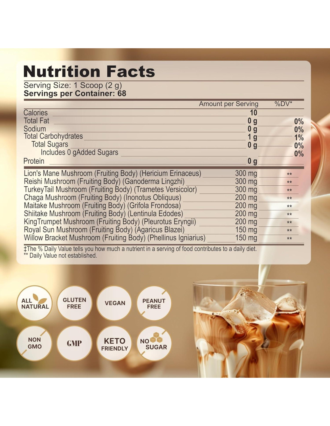 - MEZCLA DE CAFÉ AMIGABLE CON KETO: café de hongo sin azúcar añadida, cuidadosamente adaptado para el estilo de vida keto, proporcionando una opción sabrosa y satisfactoria para satisfacer las demandas de tu dieta baja en carbohidratos.
