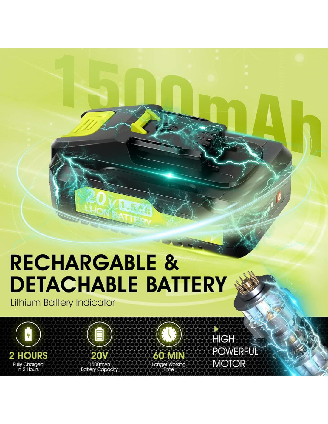 - BATERÍA RECARGABLE CON INDICADOR DE NIVEL La cortadora de setos de mano Saker inalámbrica es alimentada por una batería de litio recargable y extraíble (20V 1500mAh), lo que facilita su uso. Se carga completamente en 2 horas para aproximadamente 60 minutos de tiempo de trabajo en cualquier lugar sin necesidad de un enchufe eléctrico o cable de extensión. Puede asegurarse de que la tijera de césped y la cortadora de arbustos Saker inalámbrica tengan suficiente energía para completar su tarea de jardinería/poda sin interrupciones al monitorear el nivel de la batería.