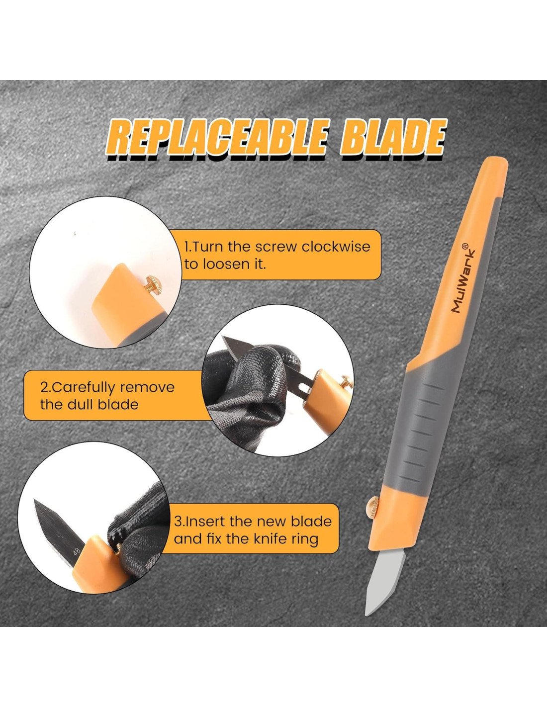 - DISEÑO ERGONÓMICO Y AMBIDIESTRO: El mango del cuchillo artesanal está hecho de goma suave y plástico ABS con una base gruesa para mayor agarre y estabilidad, y un lado plano para evitar que se caiga de su escritorio. Todos los mangos en forma de bolígrafo están pesados para equilibrio con agarre texturizado y control superior que le permite hacer cortes precisos y delicados