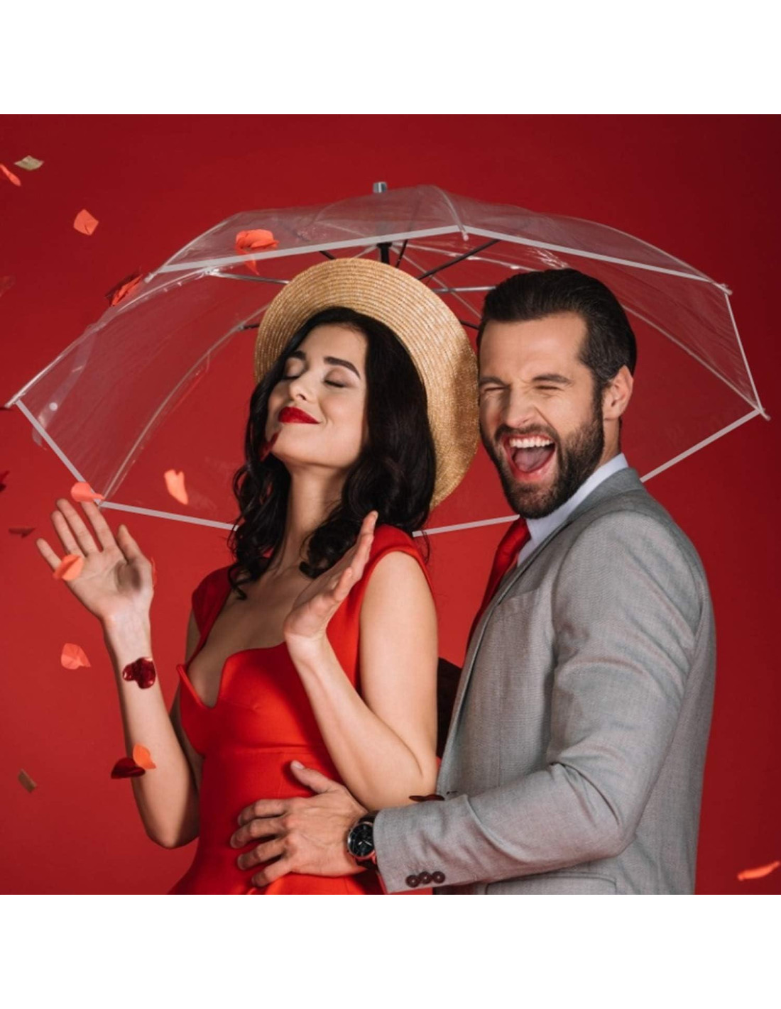 - El paraguas de golf está hecho de material transparente TPU impermeable. Sin adhesión: Use mantenimiento de polvo en la superficie para prevenir adhesión, sin efecto en el uso después de la limpieza. El material altamente transparente y claro le permite ver perfectamente incluso en días lluviosos. En el día lluvioso para mantener una visión clara, fresco y encantador, disfrute de sus momentos de lluvia. Como paraguas de mujer, se ve a la moda y puro, especialmente adecuado para bodas, desplazamientos diarios o jugar golf.