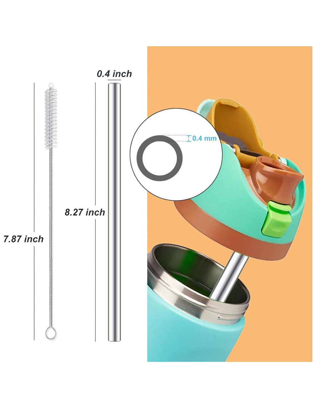 - [Elegantes y Convenientes] Nuestras pajitas reutilizables proporcionan una longitud suficiente (21cm/8.27in) y el grosor justo (diámetro exterior: 10mm/0.39in). Estas pajitas no solo mejoran tu experiencia de bebida, sino que también añaden un toque de estilo moderno a tu botella. Ligeras y portátiles, son perfectas para usar en casa, en la oficina o en movimiento.