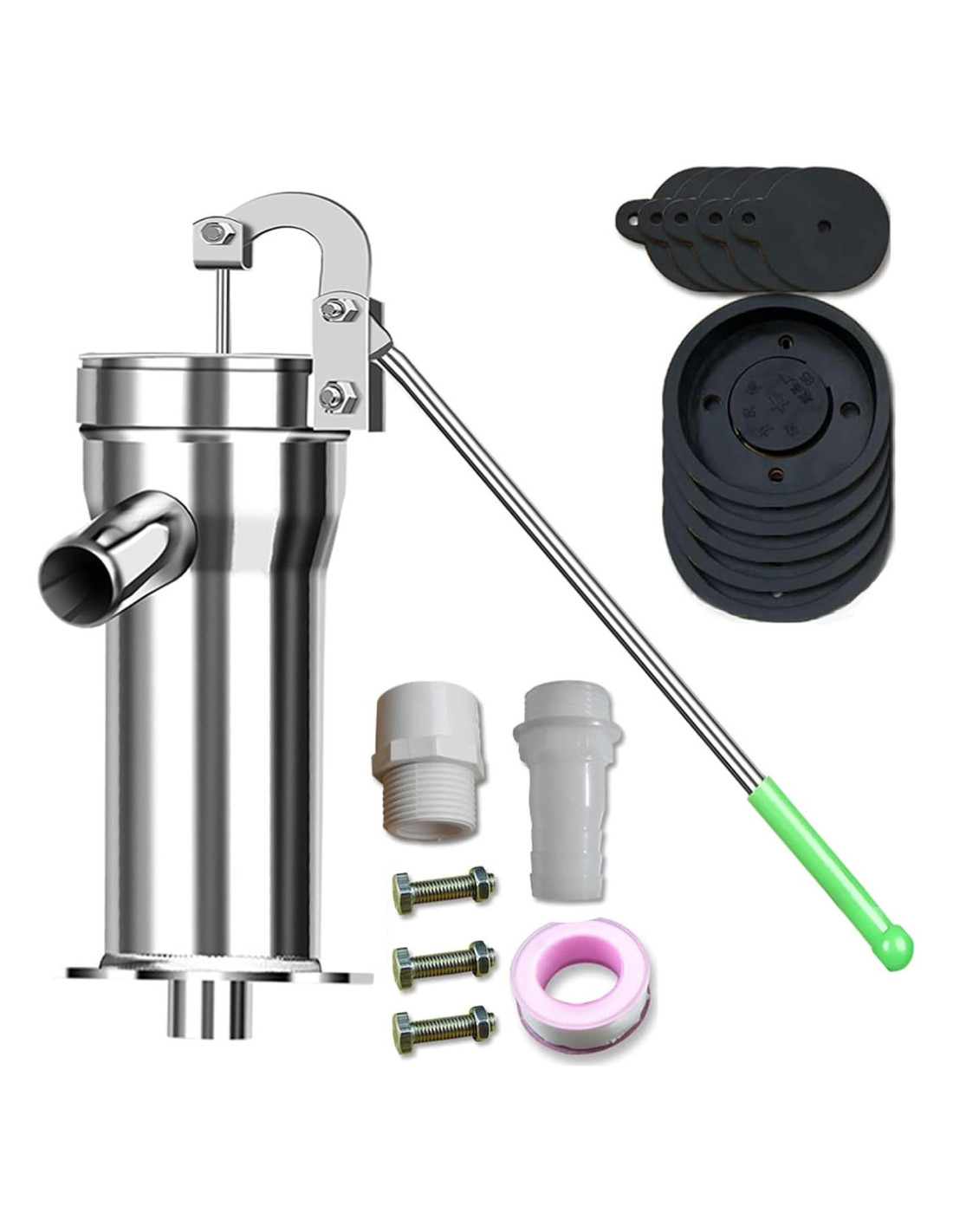 - Duradera y segura para alimentos: la bomba de agua de pozo está hecha de acero inoxidable de alta calidad, mango sólido, soldadura delicada, duradera, asegura libre de plomo, segura para alimentos, asegura que la fuente de agua esté limpia.