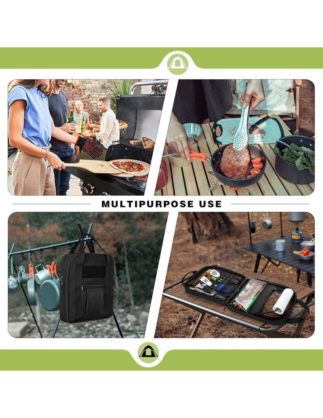 - Colgante y portátil: Las correas colgantes con hebilla segura cuelgan la bolsa en el toldo de la casa rodante, transportador de tienda o rama de árbol para un fácil acceso; las asas portátiles permiten llevarla a cualquier lugar; diseño patentado (solo bolsa, accesorios no incluidos)