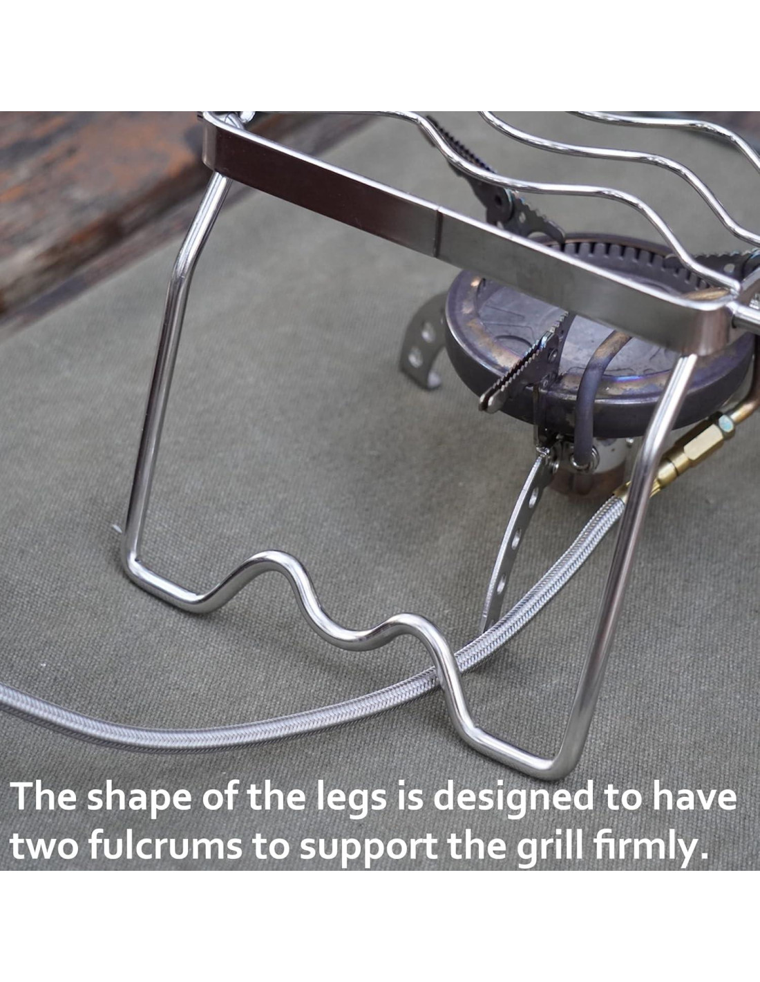 - Este soporte de fogata portátil está hecho de acero inoxidable 304. Este soporte de fogata portátil se puede usar en fuego abierto o en quemador de gas para camping.