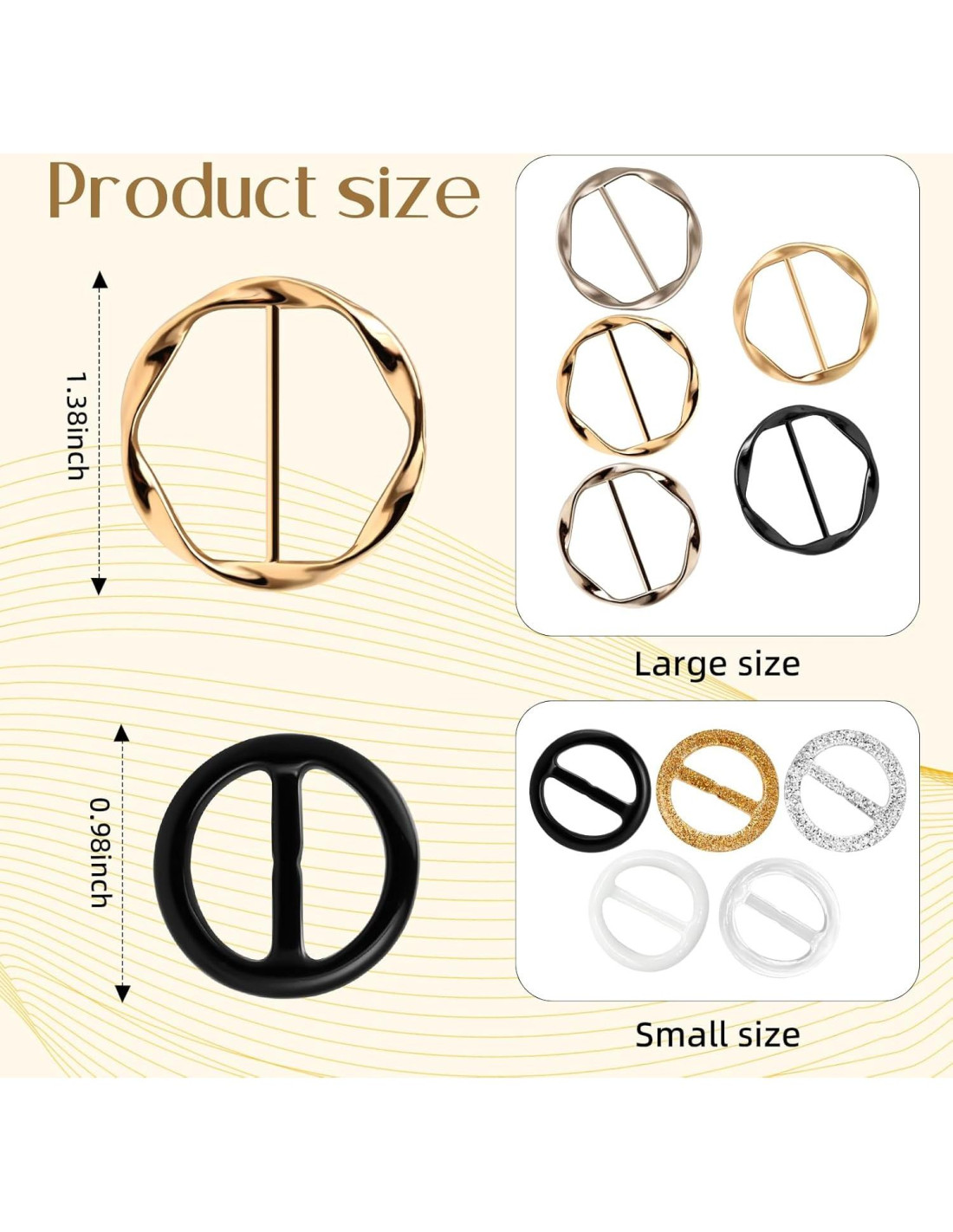 - Amplias Aplicaciones: Disponibles en una variedad de colores, estos anillos de bufanda son versátiles y se adaptan a la mayoría de las bufandas, chales y prendas, lo que los convierte en un accesorio imprescindible para cualquier persona con estilo. Perfectos para ocasiones especiales como citas, fiestas elegantes y bodas, estos clips de camiseta para mujeres añaden un toque elegante a cualquier atuendo.