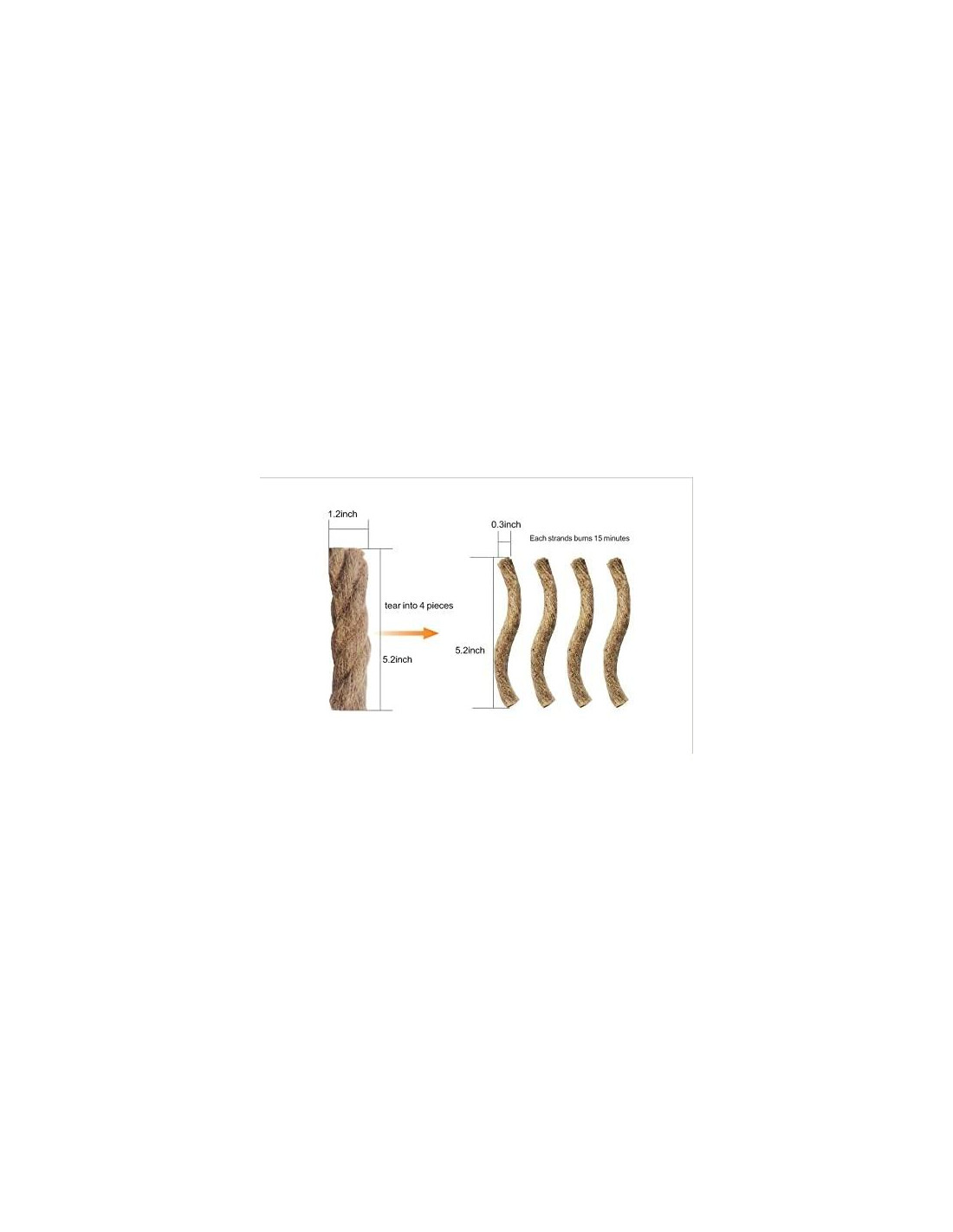 - [Herramientas Confiables para Encender Fuego] Encienda fuegos en cualquier clima con cerillas a prueba de tormentas en un estuche impermeable y una gruesa cuerda de yute impregnada de cera (1.2" x 5.2" (3.05 cm x 13.21 cm)) que arde durante aproximadamente 25 minutos, o puede deshacerse en 4 hebras, cada una ardiendo durante 15 minutos - ideal para condiciones húmedas o ventosas.