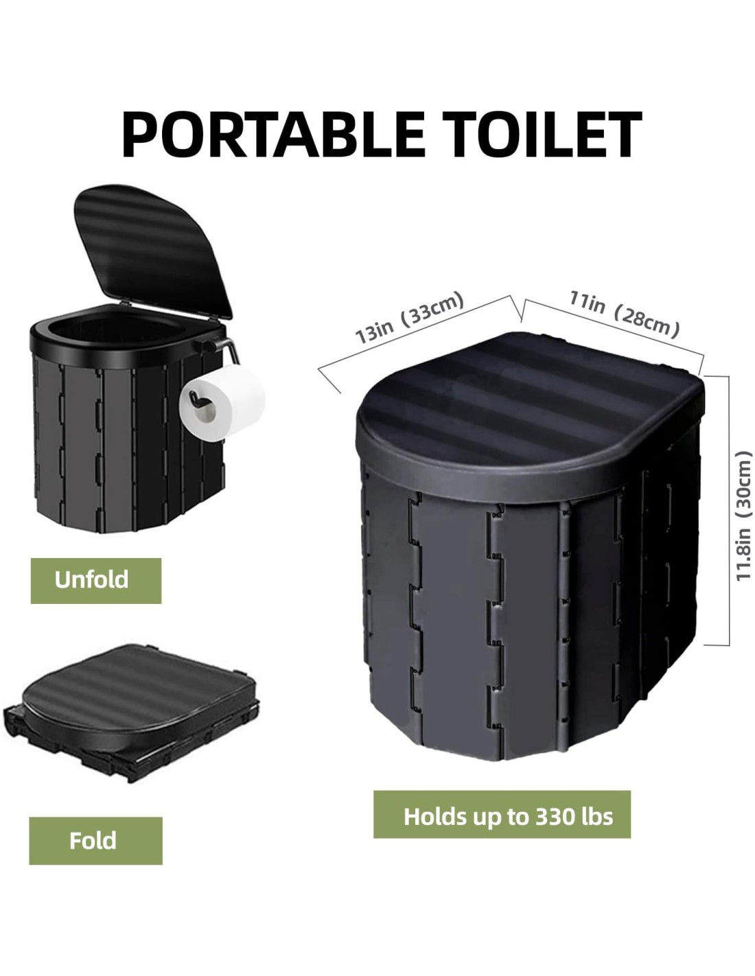 - [Inodoro portátil] Nuestro inodoro portátil para acampar cuenta con un diseño plegable, que puede soportar un peso de hasta 150 kg, adecuado para uso adulto. Equipado con 12 bolsas de inodoro, es conveniente e higiénico, respondiendo efectivamente a emergencias al aire libre.