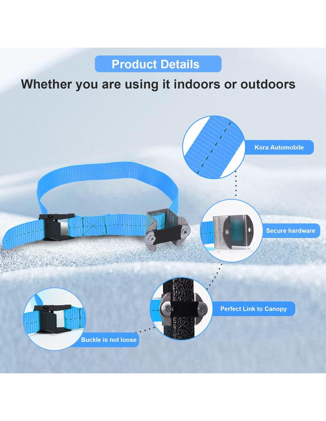 - La cinta de retención y la hebilla se pueden atar a todos los objetos pesados, y usted y su familia pueden usar materiales en cualquier lugar para pesar la carpa al viajar.