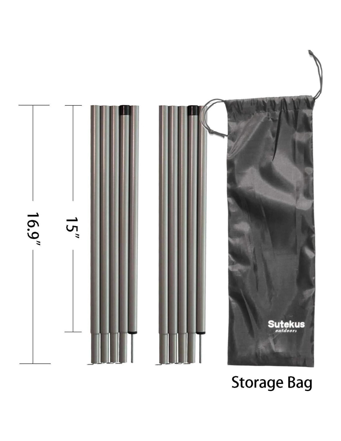 - Cada sección mide 15 pulgadas (38.1 cm) de largo y 0.6" (1.52 cm) de diámetro. La longitud ensamblada de un poste es de 75" (190.5 cm). Peso: 1.98 lbs (0.9 kg) para 2 postes/10 secciones. Ligero.