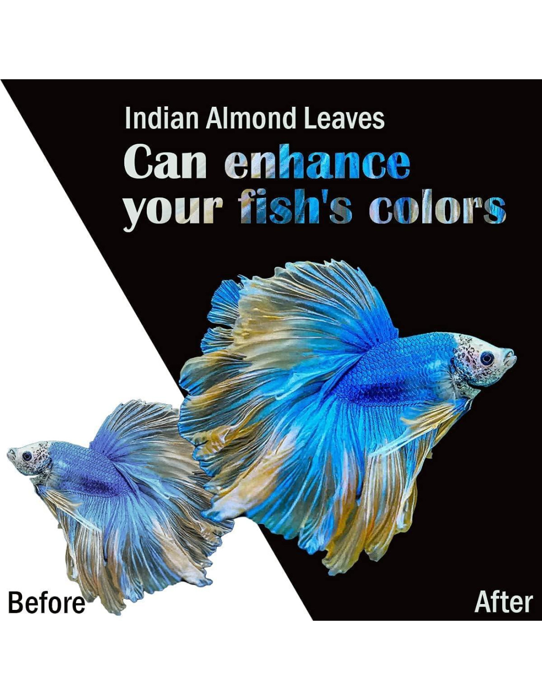 - MEJOR MANERA DE CREAR UN AMBIENTE DE SELVA TROPICAL PARA ELLOS. - Las hojas de Catappa ayudan a ajustar el agua para tener el valor de pH. Y ayudan a añadir minerales como fuentes de alimento. Haciéndolos sentir como si vivieran en su ambiente natural. y vitalidad en los peces tropicales. ¡Les encanta!