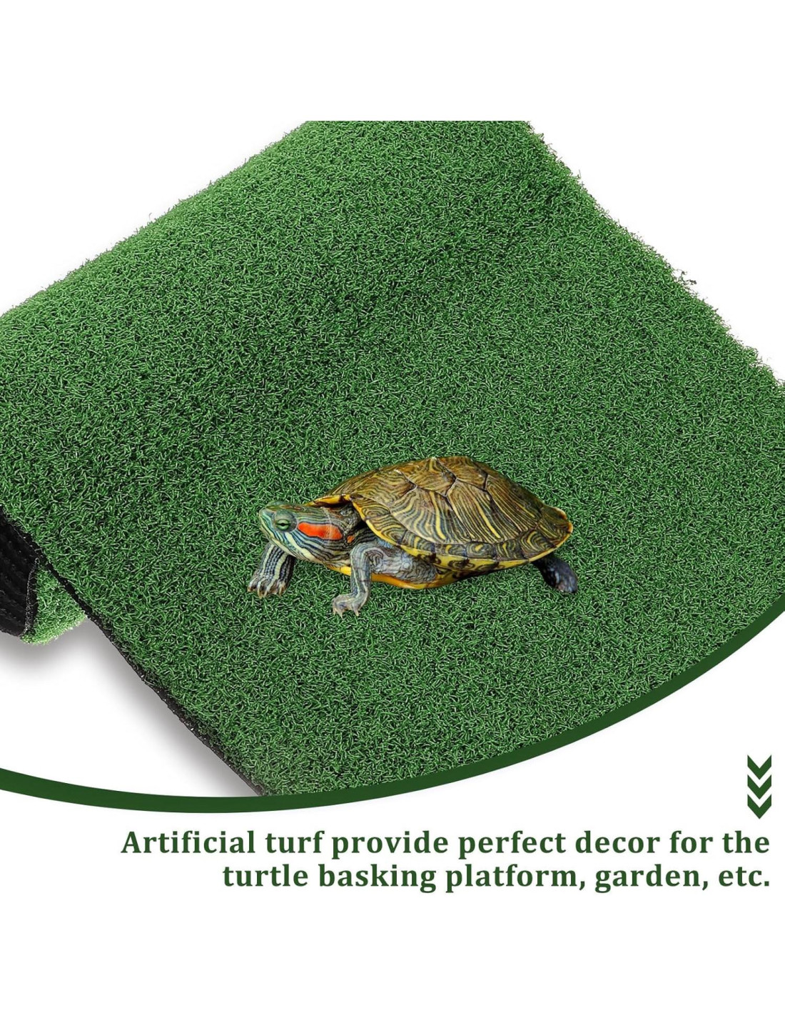 - Plataforma de Sol para Tortugas: Este césped artificial proporciona un espacio vibrante y decorativo para la plataforma de sol de tu tortuga, mejorando la estética de tu acuario mientras crea un área de descanso cómoda para tu mascota