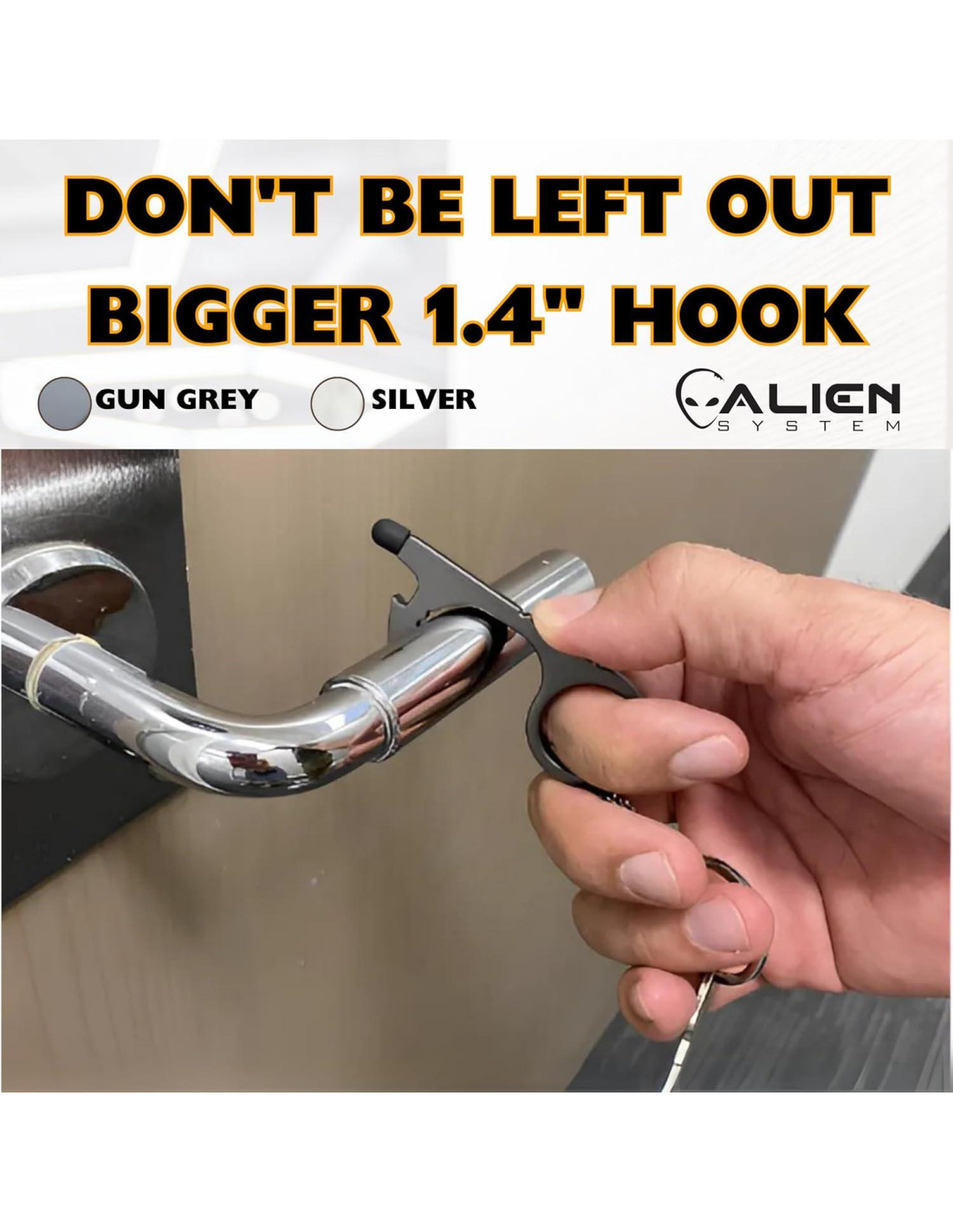 - COMPACTO PREMIUM - Muchas herramientas de llavero para abrir puertas higiénicas son voluminosas, afiladas y tienen un gancho más corto. Nuestro abridor de puertas de llavero más seguro es compacto y, sin embargo, abre manijas más grandes que el resto